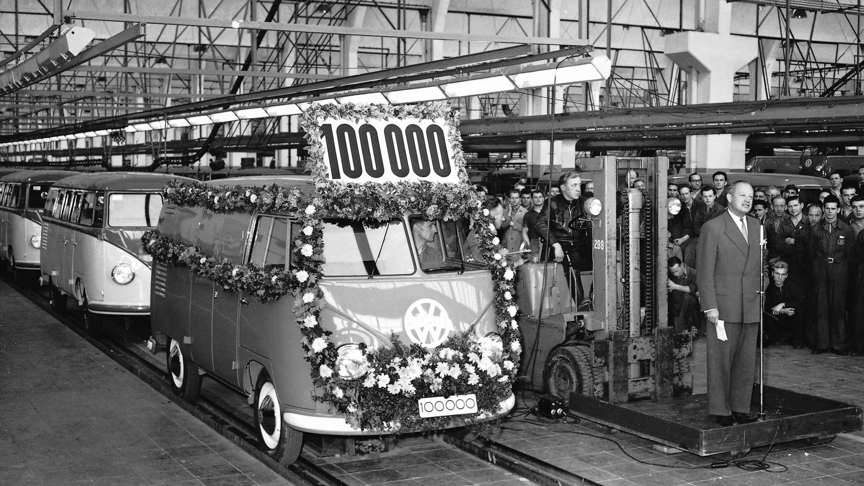 Cztery lata po rozpoczęciu produkcji z taśm fabryki w Wolfsburgu zjechał 100-tysięczny Volkswagen Transporter, a do wyboru było już 30 wersji tego modelu. Dziennie produkowało się 80 egzemplarzy - więcej się nie dało, bo zakłady były obciążone do granic możliwości produkcją Garbusów. Coraz wyraźniej widać, że Transporter potrzebował osobnej fabryki.