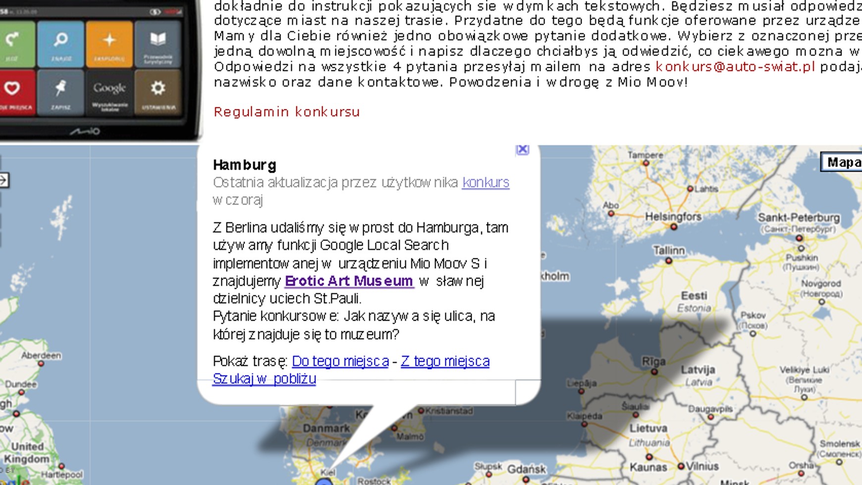 Co 2 tygodnie zwycięzca konkursu otrzymuje urządzenie nawigacyjne Mio Moov S 505