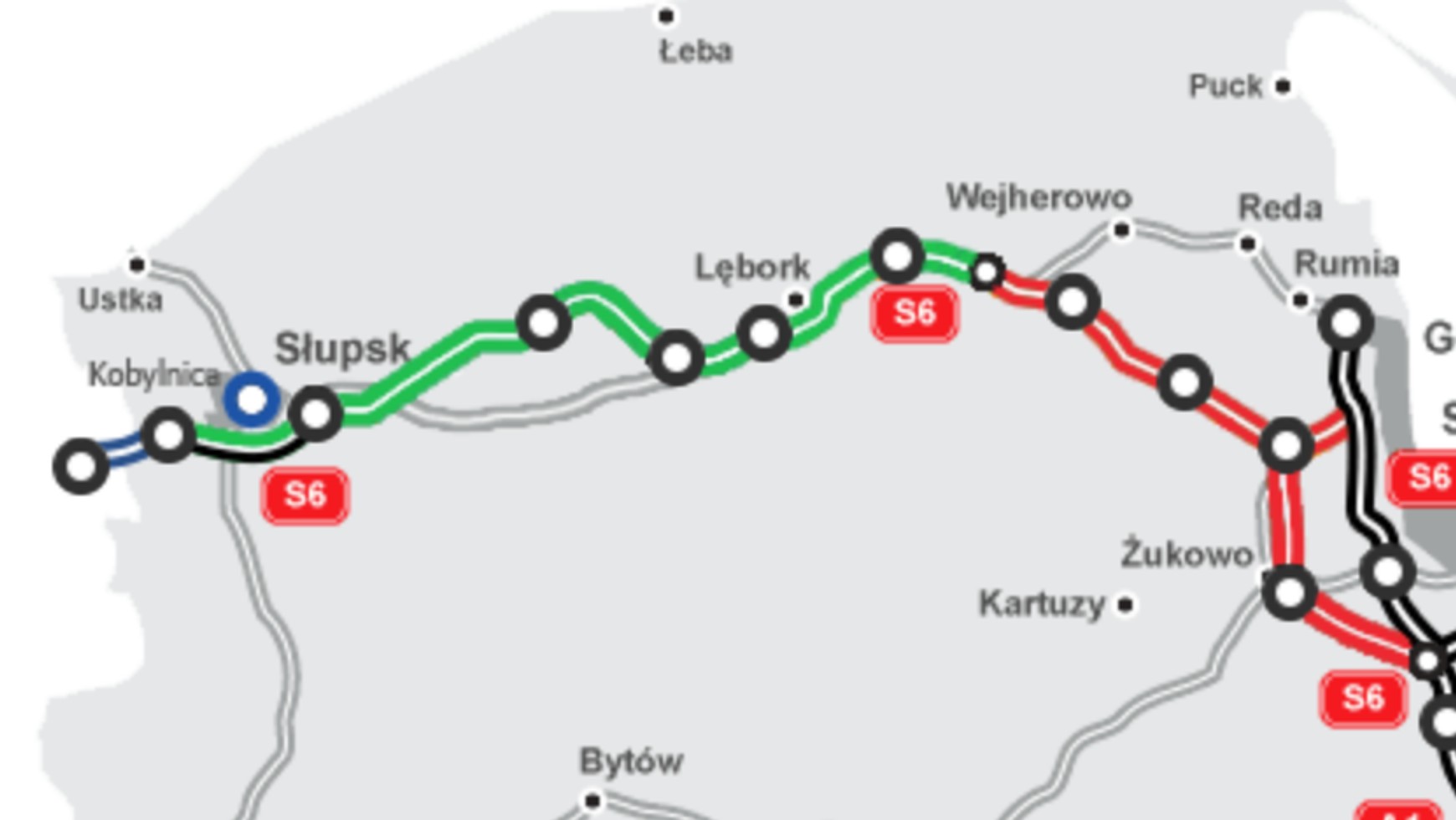 Obecnie w budowie są trzy odcinki drogi ekspresowej S6 o długości ok. 41 km między Bożympolem Wielkim a Gdynią. Natomiast na wstępnym etapie realizacji znajdują się dwa odcinki Obwodnicy Metropolii Trójmiejskiej o długości ponad 32 km. Umowy z wykonawcami na ich projekt i budowę zostały podpisane 16 kwietnia br. Z kolei 20 kwietnia wybrana została najkorzystniejsza oferta w przetargu na drugą jezdnię obwodnicy Słupska w ciągu S6.