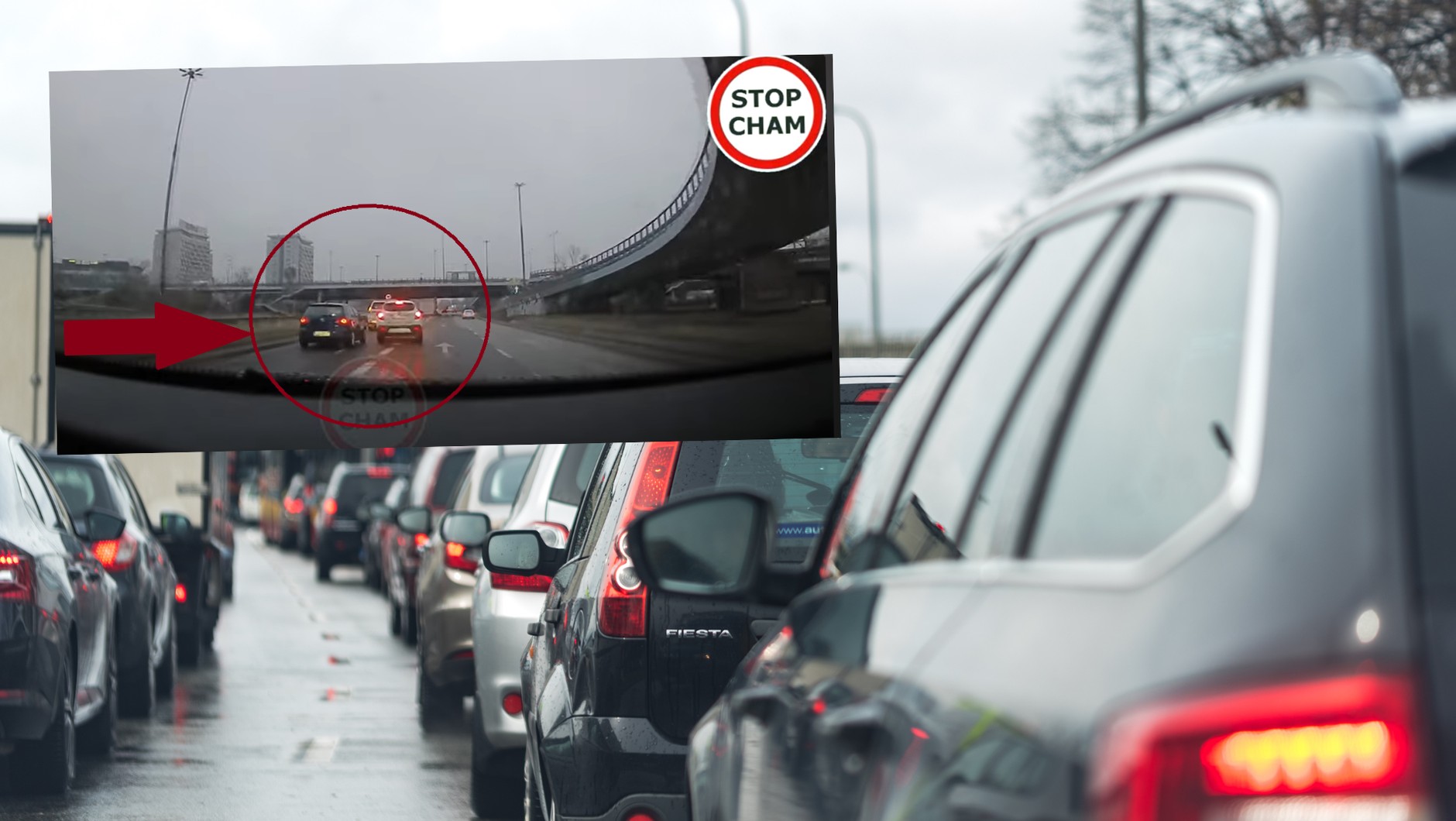 Nagranie pochodzi z ulicy Czerniakowskiej w okolicy stadionu warszawskiej Legii. Powstało na początku lutego, ale dopiero teraz trafiło do sieci. Widać na nim kierowcę volkswagena golfa, który zmienia pas w ostatniej chwili, zajeżdżając drogę innemu i tym samym wymuszając na nim pierwszeństwo. Kierujący oplem zmuszony jest gwałtownie hamować. Na tym się jednak nie kończy.