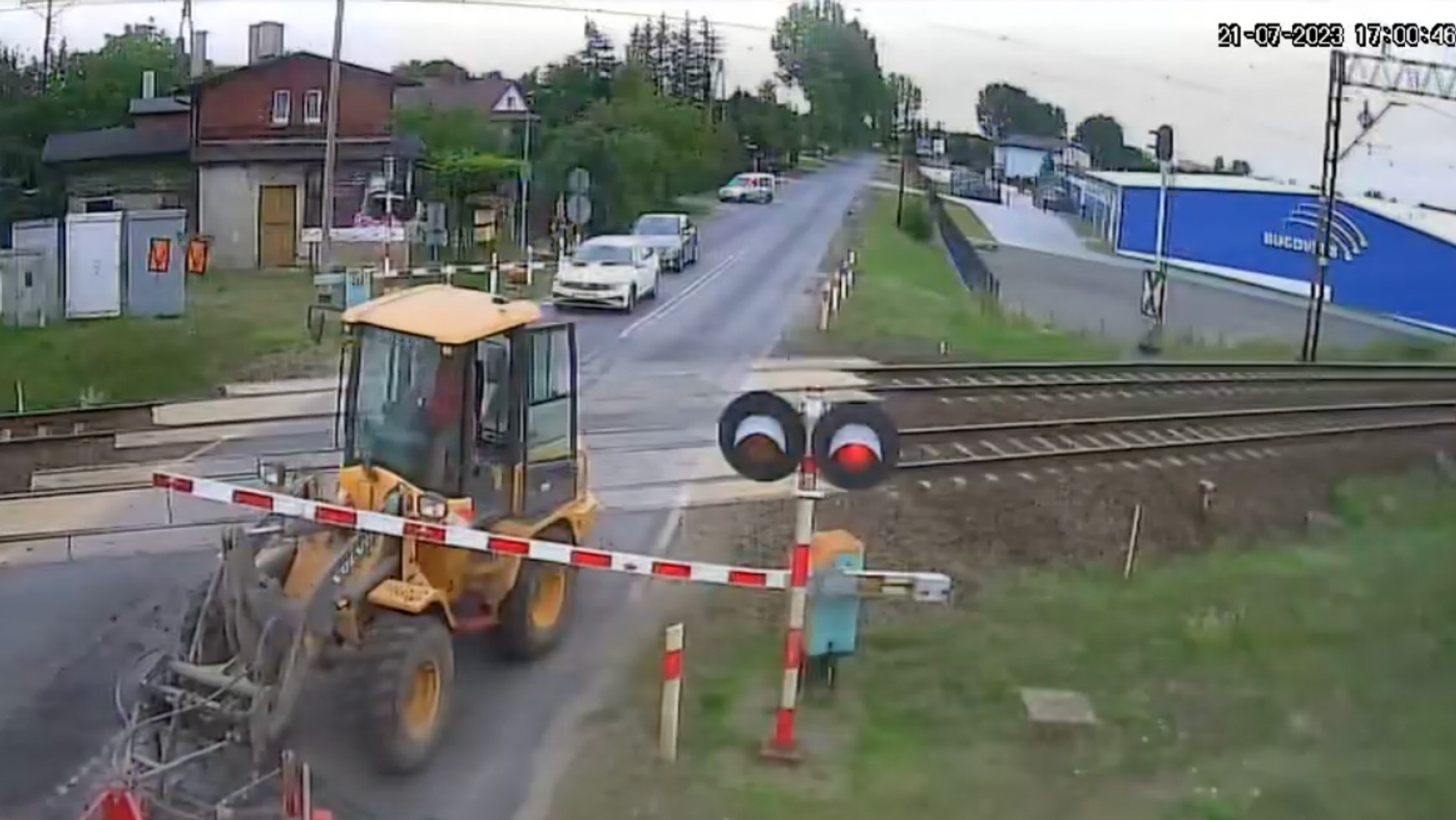 Do zdarzenia doszło 21 lipca na przejeździe kolejowym w miejscowości Wiecanowo (woj. kujawsko-pomorskie). Na nagraniu widać, jak kierowca ładowarki kołowej wjeżdża tyłem na przejazd kolejowy w momencie, kiedy została włączona sygnalizacja świetlna i zaczynały opadać rogatki. Mimo groźnie wyglądającej sytuacji nikt nie ucierpiał.