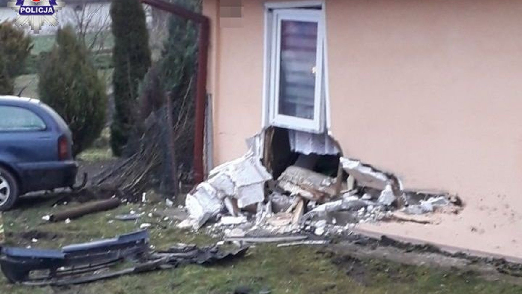 Auto wbiło się w ścianę budynku stojącego niedaleko drogi. Dom został zniszczony, ale mieszkańcom, którzy spali w środku, nic się nie stało. Kierowcą Skody okazał się 23-letni mieszkaniec gminy Horodło, który — jak ustalili policjanci — jechał od Hrubieszowa w kierunku Strzyżowa. W pewnym momencie stracił panowanie nad kierownicą i zjechał na prawe pobocze, a następnie uderzył w budynek, przebijając ścianę na wylot.