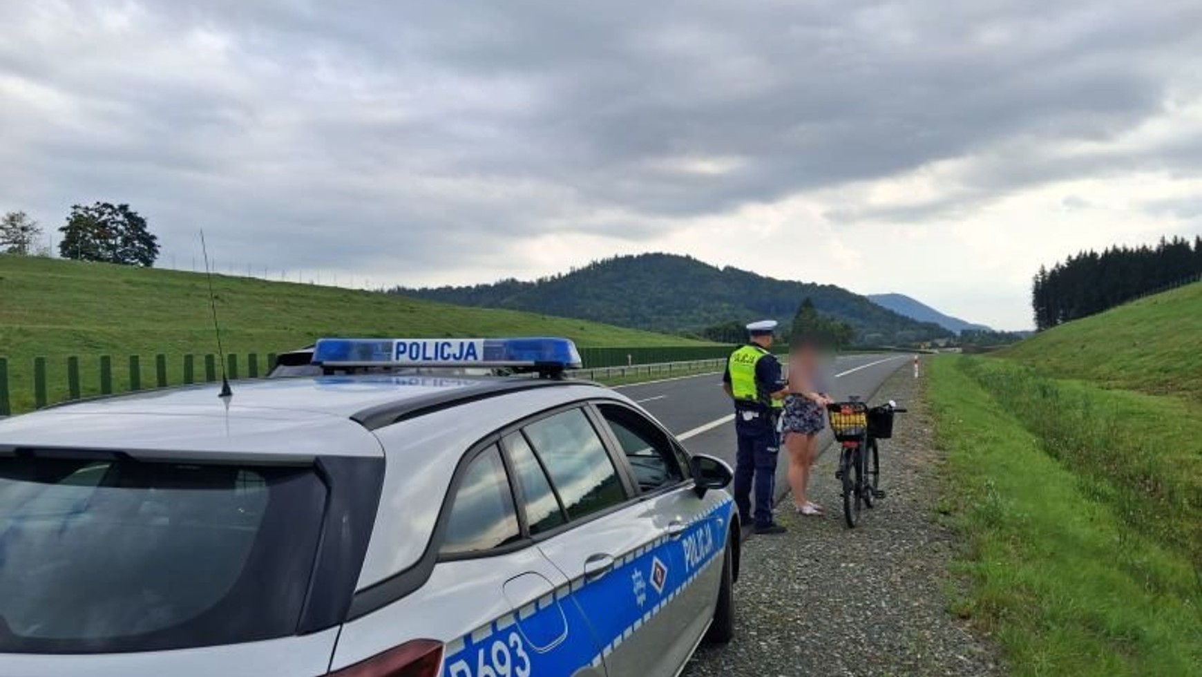 Zgłoszenie o rowerzystce na ekspresówce wpłynęło do Wydziału Ruchu Drogowego Komendy Powiatowej Policji w Kamiennej Górze. Osoba, która zauważyła kobietę na trasie, natychmiast powiadomiła służby. Mundurowi szybko zlokalizowali rowerzystkę i zatrzymali ją do kontroli.