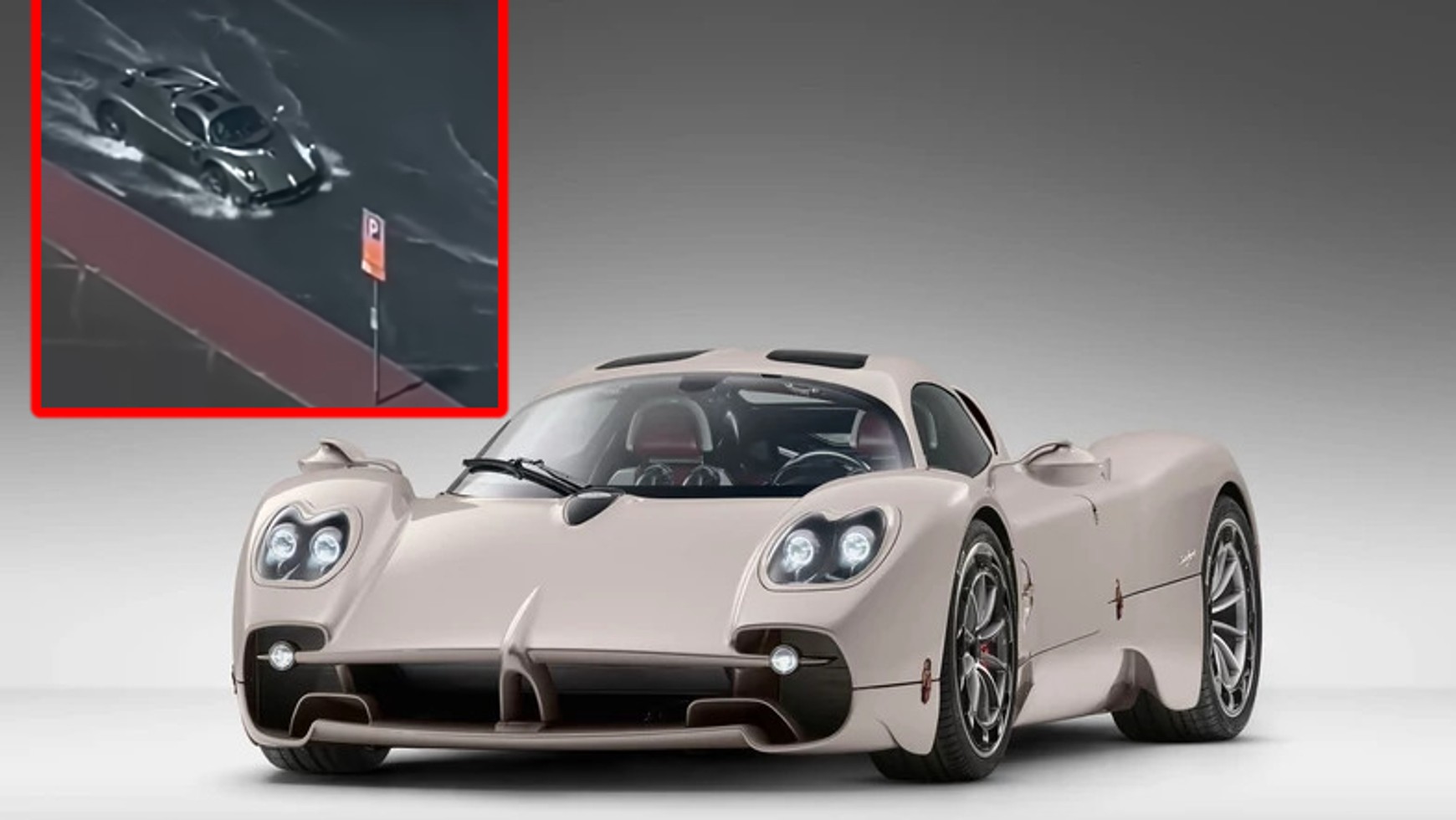 Na filmie widać, że kierowca waha się początkowo przed pokonaniem wodnej przeszkody. Ostatecznie kontynuuje jazdę. W przypadku takiego samochodu, jak Pagani Utopia to dość ryzykowne.