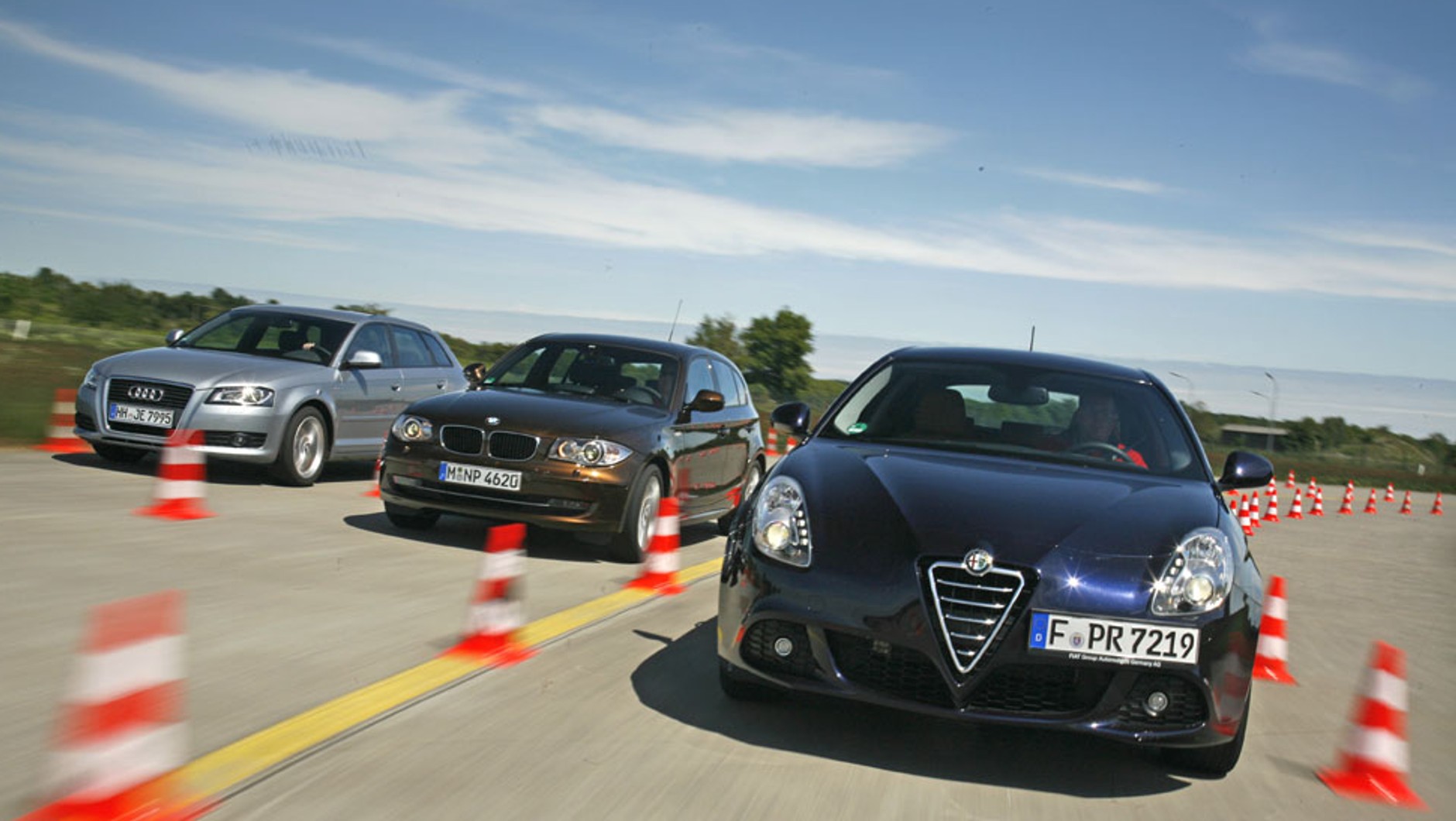 Tymczasem piękna Alfa deklasuje „niemców” pod względem zarówno dynamiki, jak i wrażeń akustycznych. Ale ten wspaniały, rasowy gang nie czyni jeszcze z Alfy sportowca. Owszem, Giulietta waży 1346 kg i jest najszczuplejsza z całej trójki, ale miękkie zawieszenie źle się odbija na prowadzeniu. Na zakrętach Alfa wykazuje wysokie ambicje, ale by wykorzystać ten potencjał, należy zamówić sportowe zawieszenie i felgi o większej średnicy. Nie zapominajmy jednak, że taka modyfikacja z pewnością obniży komfort resorowania.