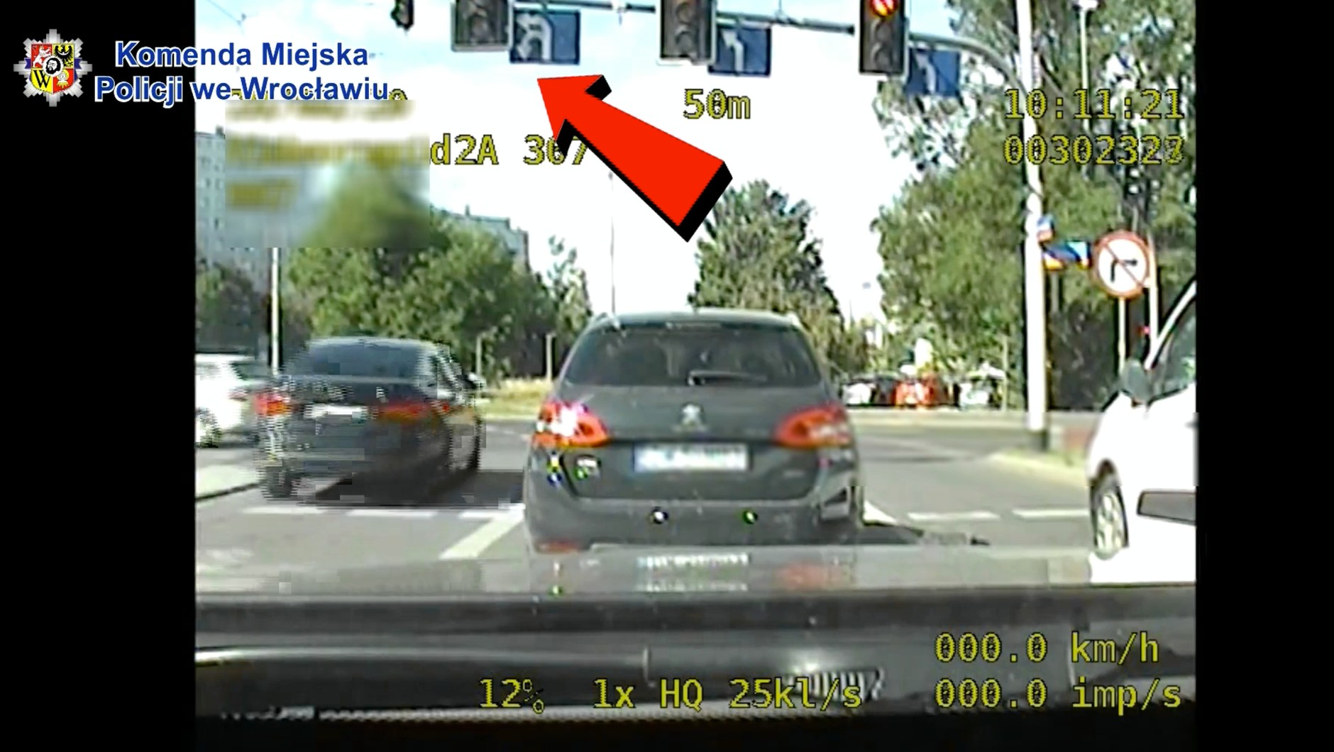 Wrocławscy policjanci, czekający na zielone światło, zauważyli kierującego BMW, który postanowił ominąć stojące przed nimi auta i... przejechać na czerwonym świetle. Kierowca jednak nie zwrócił uwagi, że na pasie obok stoi radiowóz, który wszystko nagrał.