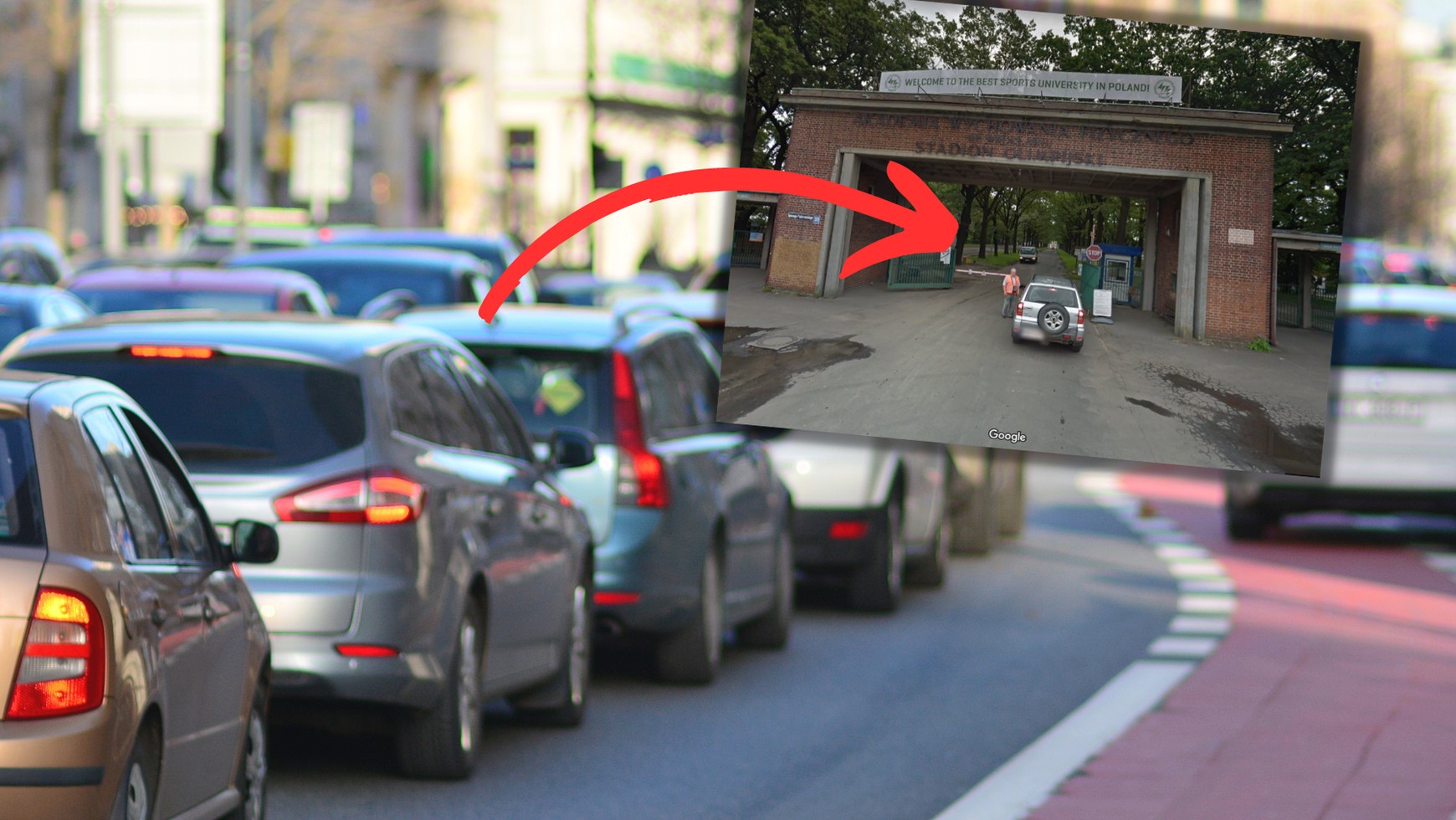 "Czy można coś zrobić, by nie stać w korku?" — nie raz zastanawiali się z pewnością kierowcy. Jak się okazuje, wystarczyło trochę pogłówkować. Zamiast jechać w kierunku objazdu zamkniętego skrzyżowania, należało skręcić w stronę Stadionu Olimpijskiego, należącego do wrocławskiej Akademii Wychowania Fizycznego (przez ogromną bramę wjazdową widoczną nieopodal ronda Wrocławskich Olimpijczyków). Tam napotkamy jednak szlaban i kasjerów. By pojechać dalej, trzeba zapłacić im 5 zł.