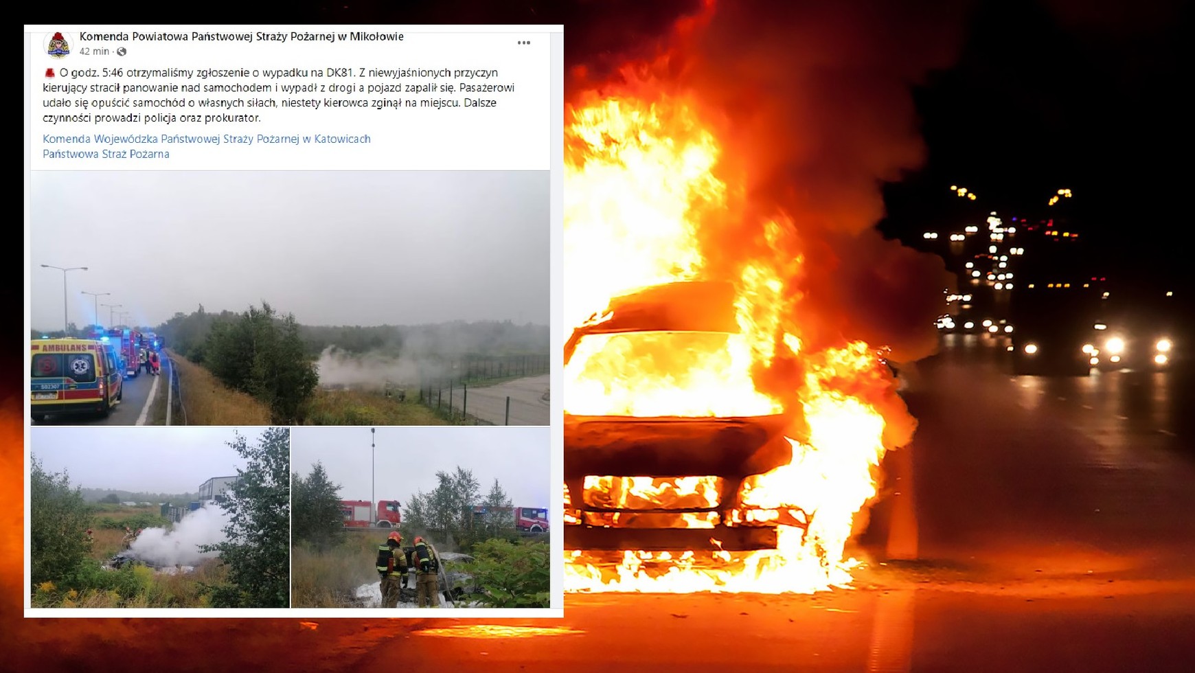 "Kiedy przyjechaliśmy na miejsce, samochód stał w płomieniach. Po jego ugaszeniu wewnątrz znaleźliśmy zwłoki kierowcy" – powiedział PAP kapitan Gendarz.