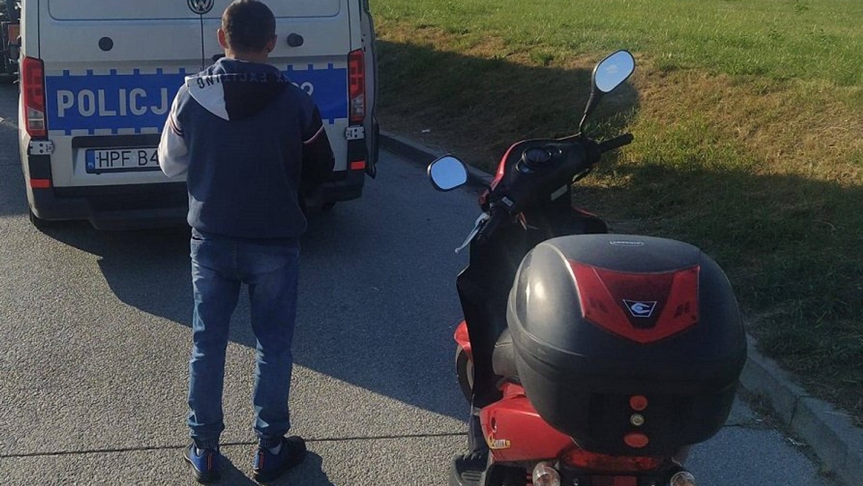 Policjanci z Wydziału Ruchu Drogowego Komendy Miejskiej Policji w Łodzi patrolowali łódzki odcinek autostrady A1 dziewiątego lipca 2022 r. w godzinach wieczornych. Około godziny 18:00 przed zjazdem na MOP Wiśniowa Góra zauważyli wyłaniającego się zza ciężarówki kierującego skuterem.
