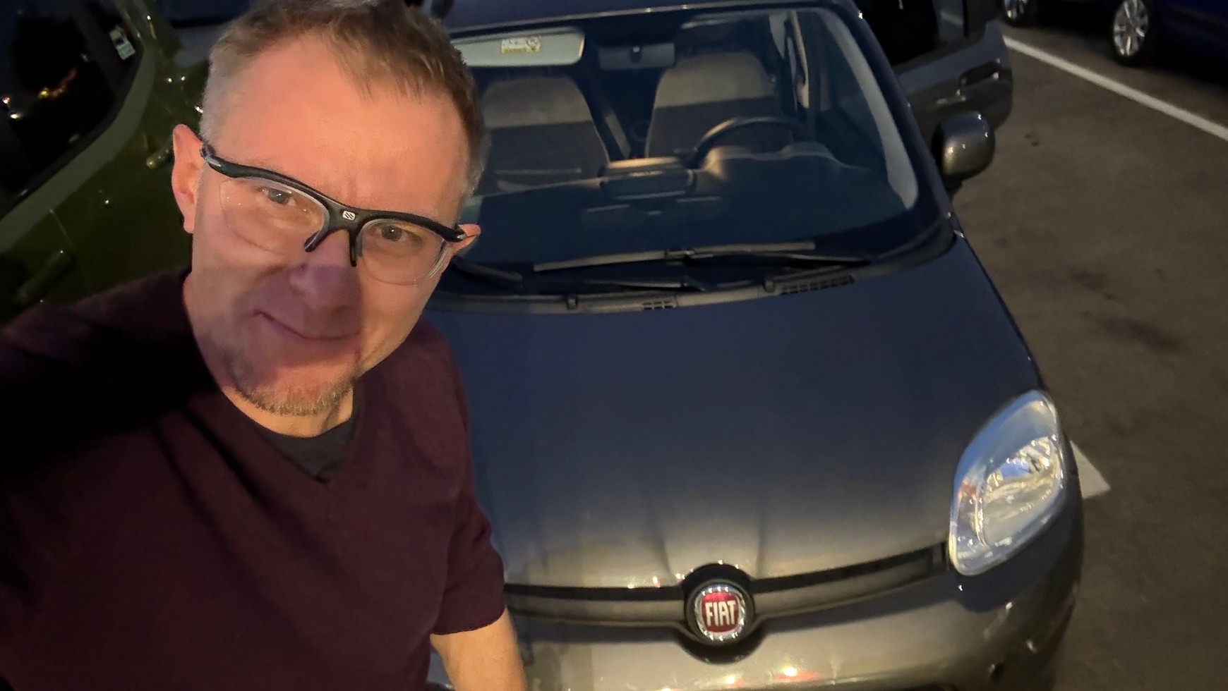 Na parkingu czeka na nas szary Fiat Panda w wersji "nicniemającej" wyposażony w dość strasznie działający 70-konny silnik hybrydowy. Mniejsza, co on ma – pomyślałem – przede wszystkim ma mnie dowieźć do celu. Nawet nie mając doświadczenia w wynajmie samochodów, wiem, że trzeba auto obejrzeć. Widzę, że jest w bardzo dobrym stanie, nieuszkodzony, nie ma co nawet robić zdjęć, bo żadnych wad po prostu nie widać. Auto zatankowane jest do pełna i ma wrócić zatankowane do pełna. Widzę, że kołpaki mają minimalne otarcia, ale chyba nie ma o czym mówić; to tylko kołpaki. Na tym etapie nie wiedziałem jeszcze, że w internecie krążą całkiem świeże opinie o firmie, z której wyjeżdżam wypożyczonym samochodem i nie są one pochlebne. Przykładowo: