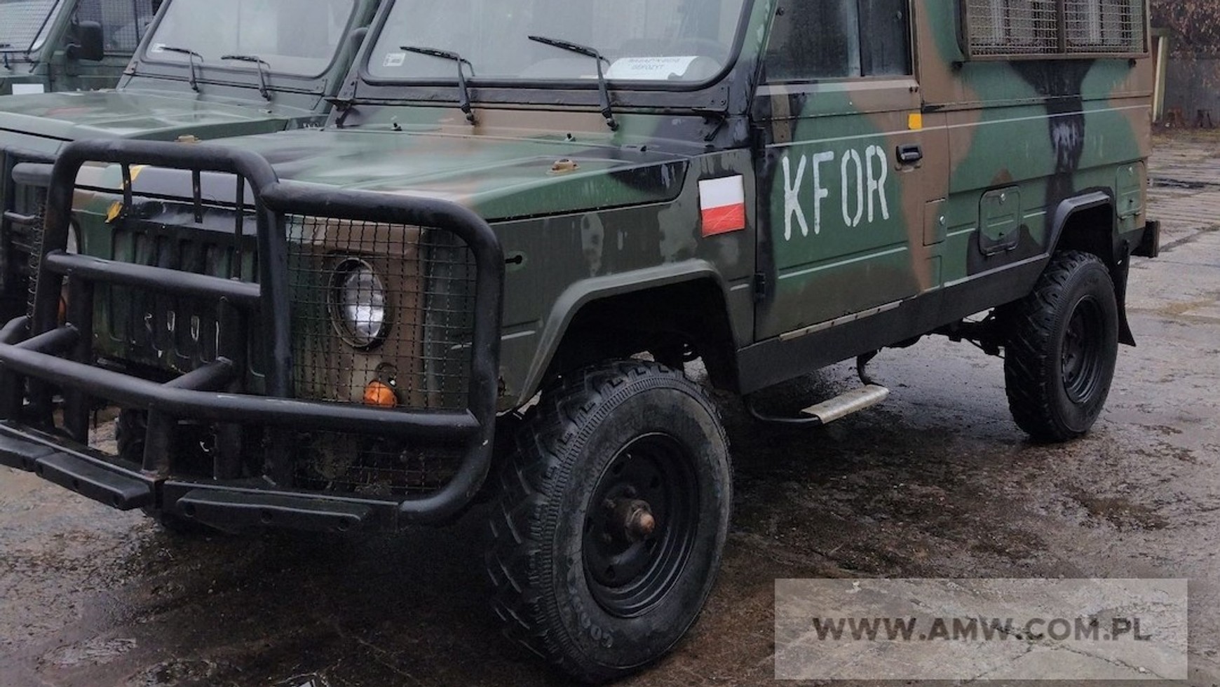 Jeden z samochodów nosi oznaczenie KFOR, więc zapewne służył w międzynarodowej misji wojskowej w Kosowie pod koniec lat 90. Wycena to 10 tys. zł.