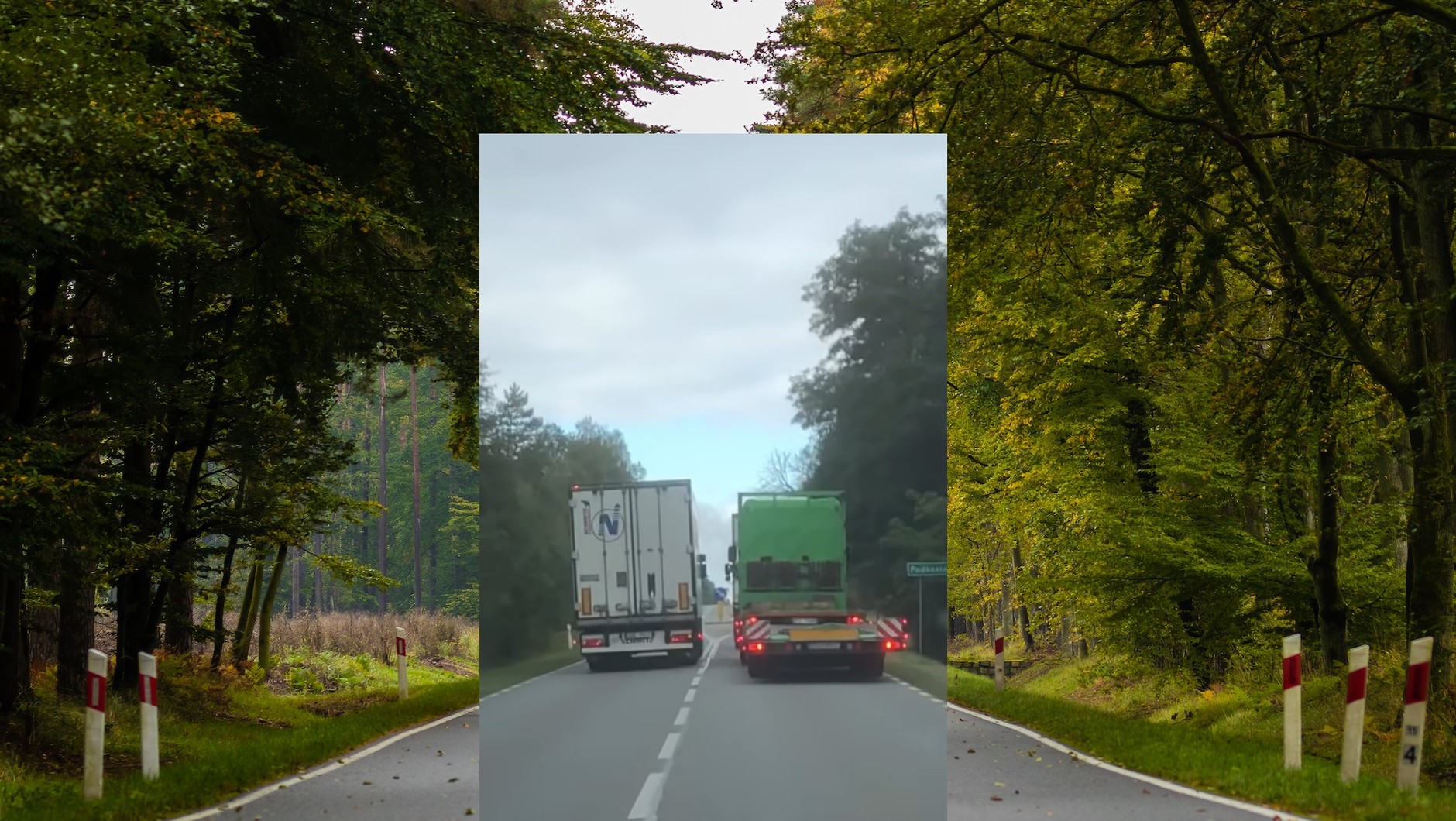 Sytuacje tego typu znamy z autostrad, kiedy wyprzedzanie często trwa minutami i niekiedy doprowadza do złości innych uczestników dróg i niebezpiecznych sytuacji. Nie są to jednak aż tak niebezpieczne sytuacje, jak wyczyn dwóch kierowców nagranych przez jednego z użytkowników YouTube. Kierowca białego ciągnika siodłowego wyprzedzał na drodze krajowej drugi podobny zestaw. Oczywiście prędkość pojazdów była zbliżona, zatem wyprzedzanie trwało bardzo długo, aż w końcu skończyło się miejsce do bezpiecznego wykonania manewru.
