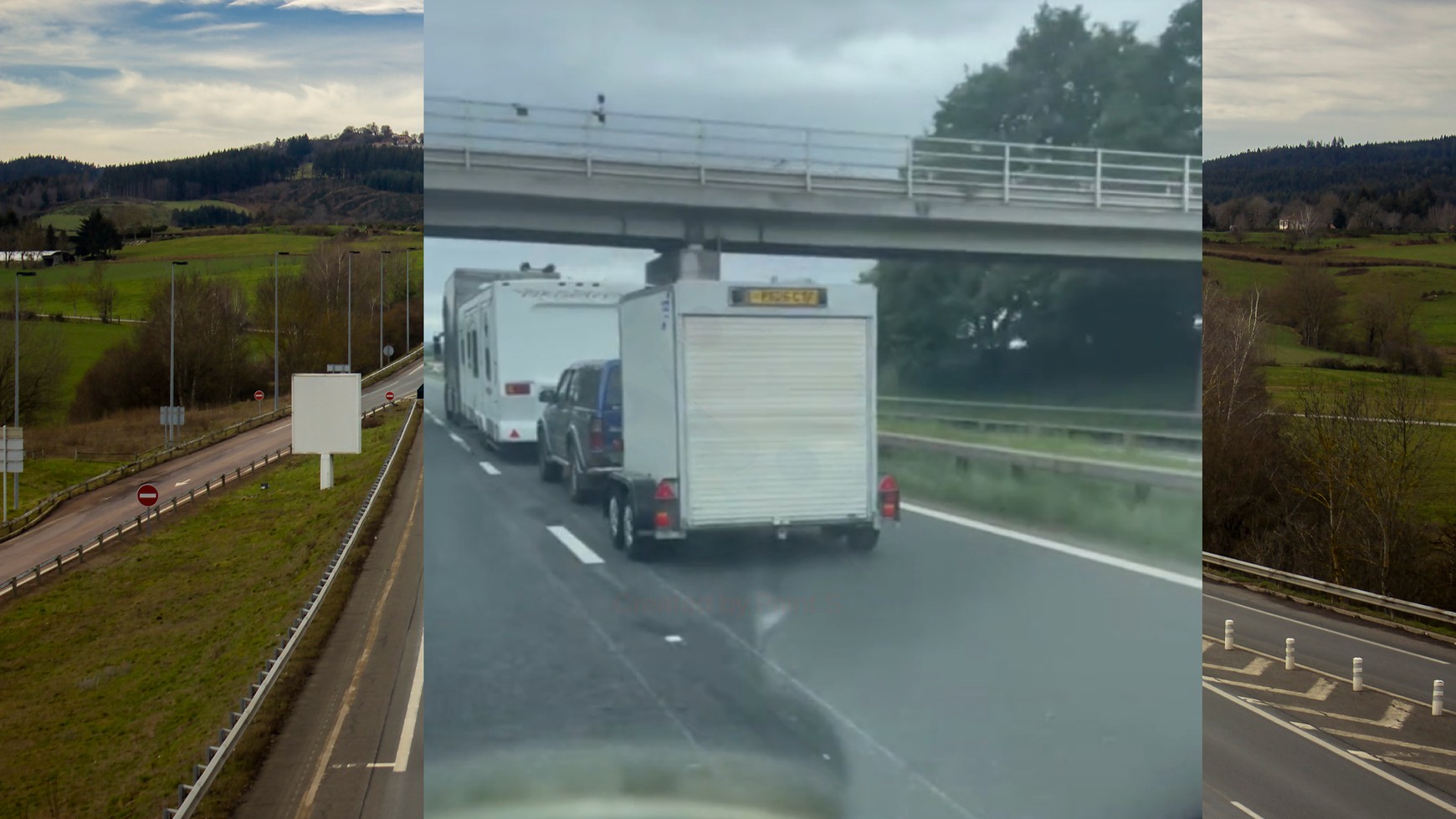 Samochód ciężarowcy ciągnący za sobą ogromną, trzyosiową przyczepę kempingową byłby trudny do opanowania dla wielu kierowców. Ale ten mistrz kierownicy w ogóle się tym nie przejął, bo do przyczepy podłączył na dyszlu jeszcze auto typu pick-up, które również miało przypiętą do haka dwuosiową przyczepę towarową.