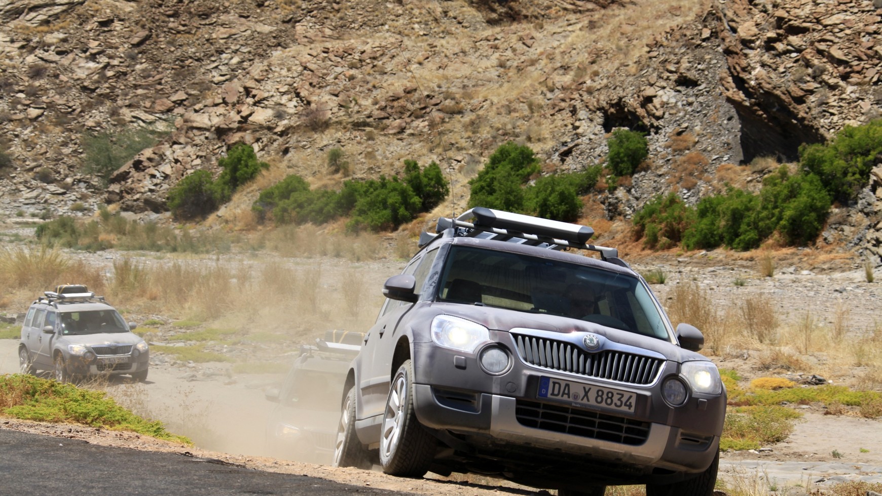 Trudno spotkać Skodę w Południowej Afryce, a tym bardziej Yeti. Tym razem zawędrowaliśmy z czeskim crossoverem aż do Namibii, gdzie ta marka jest równie egzotyczna jak żyrafy w Polsce. Droga do byłej niemieckiej kolonii nie jest najłatwiejsza. 10 tysięcy kilometrów najłatwiej przebyć samolotem. 20 godzin, przesiadka w Niemczech i RPA i jesteśmy na miejscu. Samochodom podróż zajęła znacznie więcej czasu, gdyż musiały płynąć statkiem. Ta forma transportu do Namibii zawsze siała postrach wśród marynarzy. Południowo-afrykańskie wybrzeże od setek lat zbiera żniwo w postaci licznych wraków odsłaniających swe pozostałości podczas odpływu oceanu. Czasy się jednak zmieniają, a wraz z nimi technologia nawigacyjna. Podobnie ma się rzecz z samochodami, które z każdą kolejną generacją dojrzewają. Nieprzypadkowo wybór padł właśnie na Yeti. Ten kompaktowy crossover posiada opcjonalny napęd na obie osie, mocne silniki wysokoprężne oraz przestronne wnętrze - zestaw w sam raz na 1500 kilometrów po namibijskich bezdrożach. A te okazują się bardzo wymagające. Już po opuszczeniu murów stolicy - Windhoek, kończy się asfalt i zaczynają szutrowe nawierzchnie pełne niespodzianek. Mimo, iż można po nich mknąć z prędkościami przekraczającymi 80 km/h, to należy wystrzegać się niespodzianek w postaci głębokich poprzecznych nierówności, garbów i typowych ubytków mogących na stałe unieruchomić nasz pojazd. Do tego, trzeba się liczyć z tumanami kurzu nieodzownymi w porze suchej trwającej niemal cały rok. Podczas jazdy w konwoju, minimalne odstępy między poszczególnymi samochodami powinny wynosić około 100 metrów. Poniżej tej wartości nie widać absolutnie nic. Wjeżdżając w chmurę pyłu skutecznie minimalizujemy bezpieczną widoczność. W takich warunkach łatwo też zderzyć się z przebiegającym przez drogę zwierzęciem. Na wyschniętych sawannach wypoczywa mnóstwo guźców, strusi, i wszelkiego rodzaju antylop. Kolizja z ponad stukilogramowym czworonogiem może skończyć się tragicznie, a na assistance nie ma co zbyt szybko liczyć. Odległości między największymi miejscowościami (25-30 tysięcy mieszkańców) liczone są nawet w setkach kilometrów. Dookoła tylko monotonny krajobraz zmieniający się co kilka godzin i dzika zwierzyna. Przed wyruszeniem w całodniową lub kilkudniową podróż, trzeba pamiętać o zatankowaniu do pełna zbiornika paliwa i odpowiednim przygotowaniu auta. Mechaniczni towarzysze naszej wycieczki otrzymali metalową płytę ochronną, właściwe na szutry ogumienie i naklejki na szyby mające je zabezpieczać przed wylatującymi spod kół innych samochodów kamieniami. Poza tym, pojazdy pozostały w fabrycznych specyfikacjach. Pod maską dwulitrowy wysokoprężny silnik o mocy 170 koni mechanicznych i napęd 4x4 nieodzowny w tamtejszych warunkach. W środku klimatyzacja wraz z filtrem przeciwpyłkowym nieźle izolującym przedział pasażerski od ogromnych ilości kurzu i nawigacja, która okazała się nieprzydatna w byłej kolonii niemieckiej. Miejscowe samochody poruszające się po namibijskich szlakach transportowych, to w zdecydowanej większości pojazdy z napędem na obie osie. Co prawda, poza miastami i głównymi drogami trudno na odcinku nawet 50 kilometrów spotkać inne auto, ale jak już się pojawi, to jest zazwyczaj terenówką pokroju Land Cruisera lub pickupem (najczęściej występował Hilux). Stąd też pojawiły się w naszych głowach obawy przed pokonaniem trudniejszych odcinków. Lokalne drogi nie zrobiły jednak na Yeti większego wrażenia. Przez pięć dni udało nam się pokonać łącznie ponad 1500 kilometrów. Jeździliśmy po wyschniętych rzekach, skalistych terenach przypominających krajobraz księżycowy (wielu hollywoodzkich reżyserów decyduje się kręcić tam swoje filmy), ruchomych piaskach i po odciętych od cywilizacji rezerwatach, gdzie człowiek występował jedynie jako turysta. Żadna z czeskich wielozadaniowych maszyn nie odmówiła posłuszeństwa i dotarła bezproblemowo do celu. Kłopotów przysporzyły jedynie pojawiające się znikąd kamienie. Ich destrukcyjne działanie zebrało plony w postaci dwóch pękniętych szyb czołowych. Namibia to nie tylko raj dla zwierząt i wielohektarowe sawanny. To także kraj pełen kontrastów i niepojętej wręcz biedy. W miastach jej nie widać, ale oficjalnie mówi się o bezrobociu sięgającym 30% i o połowie społeczeństwa żyjącym poniżej poziomu nędzy. Dochód tych najbiedniejszych nieznacznie przekracza jednego dolara amerykańskiego dziennie. Nie dziwi zatem widok całych rodzin trudniących się ulicznym handlem i wciskających naiwnym turystom lokalnych pamiątek. W większości są to wykonane przez miejscowych rzemieślników suweniry, których ceny zależą od naszych umiejętności negocjacyjnych. Poza tym, urzędowym językiem jest angielski, dzięki czemu nikt nie powinien mieć kłopotów z nawiązaniem kontaktu z tubylcami. (Adam Mikuła)
