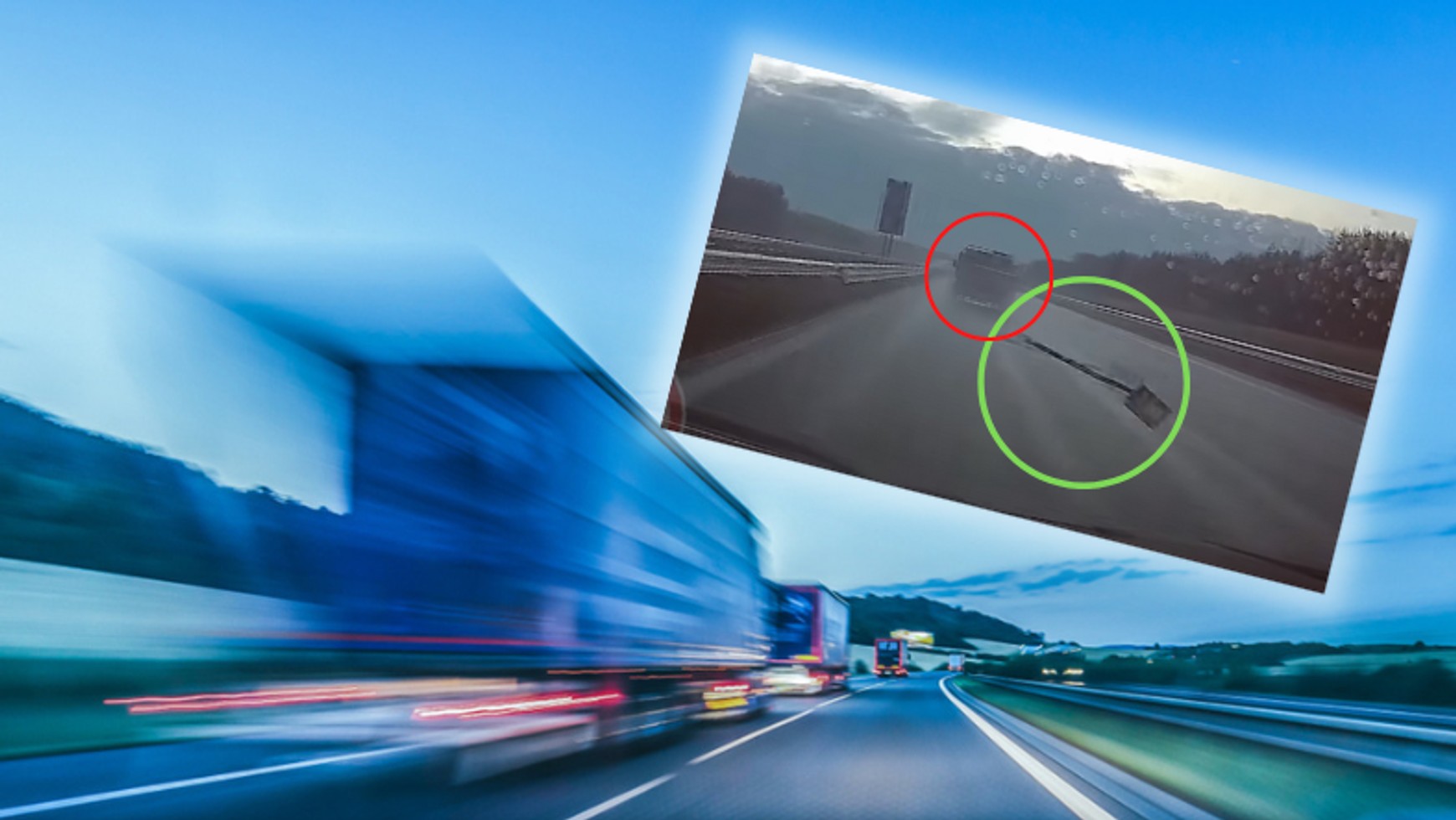 Na opublikowanym na kanale "Stop Cham" na YouTube nagraniu widać, jak kierowca samochodu osobowego spokojnie wyprzedza lewym pasem ciężarówkę przystosowaną do przewozu zwierząt. W oddali widać dostawczaka ze sprzętem budowlanym. Nagle wypada z niego łopata i z dużą prędkością toczy się po drodze, stwarzając poważne zagrożenie.