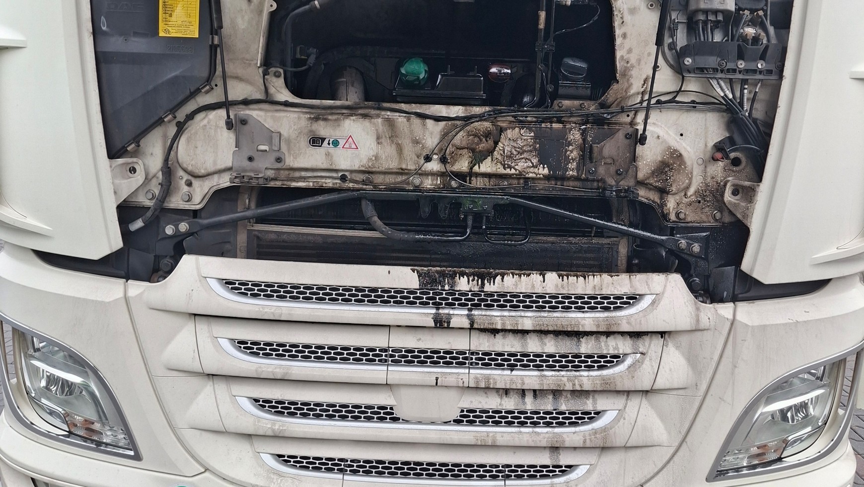Opisywana sytuacja wydarzyła się 21 listopada na opolskim odcinku autostrady A4. Okazało się, że zatrzymany zestaw "znaczy" za sobą teren. Z komory silnika ciągnika stwierdzono duże wycieki oleju. Na podłożonym kartonie szybko pojawiły się czarne plamy.