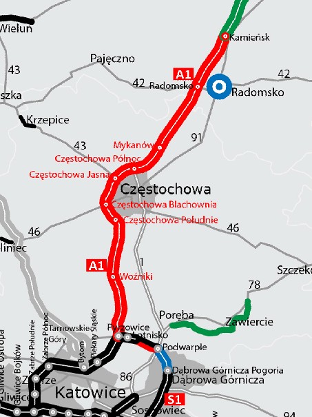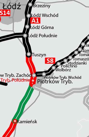 Trwają też prace nad budową kolejnych brakujących odcinków A1, między Częstochową a Tuszynem, położonym na południe od Łodzi. Jeszcze w lipcu 2018 roku podpisano umowę na budowę 17 km tej drogi od granicy województwa łódzkiego do powstającej obwodnicy Częstochowy oraz kolejnych niemal 16 km z Tuszyna do Piotrkowa Trybunalskiego. W 2018 roku wyłoniono też wykonawców A1 z Kamieńska do Radomska (około 17 km) oraz z Radomska do granicy województwa łódzkiego (około 7 km). Ostatni z realizowanych już fragmentów tej drogi ma być oddany do ruchu w pierwszej połowie 2022 roku, ale można liczyć, że poszczególne fragmenty będą udostępniane kierowcom nawet rok wcześniej. Już teraz, mimo okresu zimowego, trwają prace przygotowawcze wzdłuż obecnej drogi krajowej numer jeden na styku województwa łódzkiego i śląskiego. To porządkowanie terenu oraz wycinka drzew.