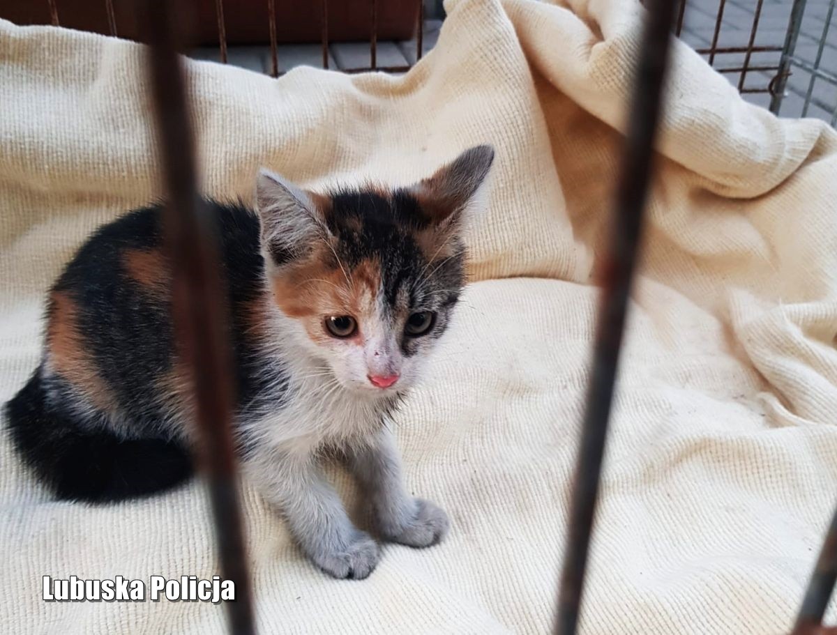Funkcjonariusze zaopiekowali się kotkiem, napoili go i zawieźli do przytuliska