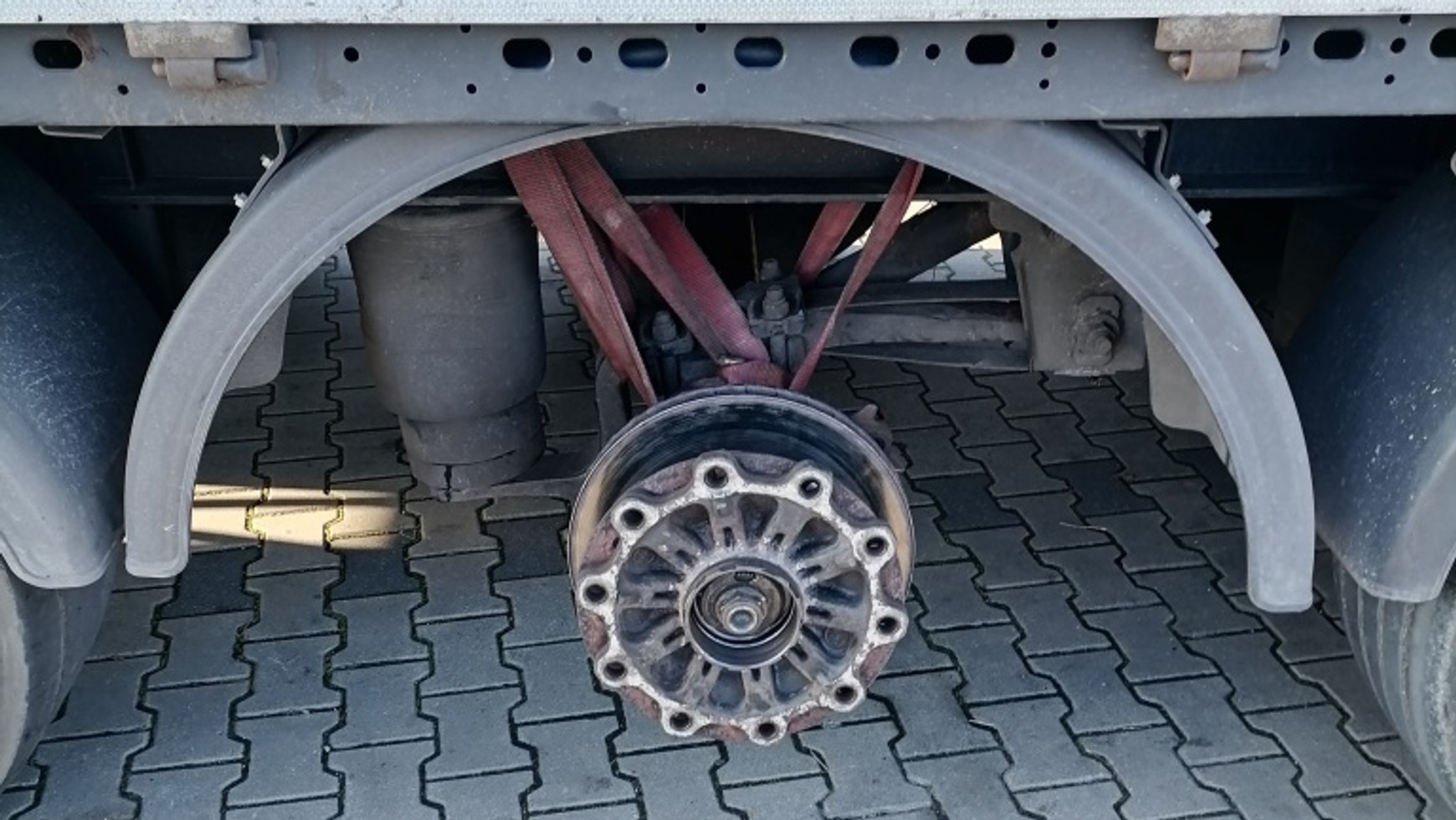 Okazało się, że kierowca dobrze wiedział, że na jednej z osi brakuje mu koła, bo sam podczepił ją pasami do mocowania ładunku do podwozia naczepy. Ciężarówką w takim przewoził 19 ton ładunku z Niemiec do Polski.
