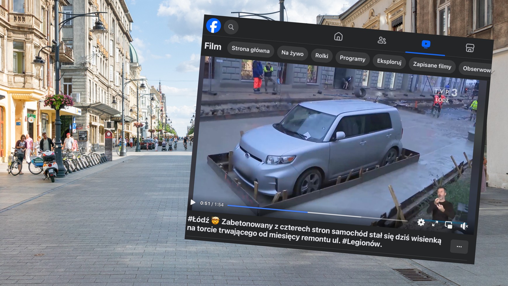Kiedy w piątek 3 listopada 2023 r. robotnicy wylewali betonową nawierzchnię na ul. Legionów w Łodzi, natknęli się na nieprawidłowo zaparkowany samochód. Reszta jest historią — beton wylano wokół auta, wieści o tym błyskawicznie się rozeszły, a "uwięziony" hatchback został największą turystyczną atrakcją Łodzi. Tyle że w nocy z 4 na 5 listopada samochód zniknął.