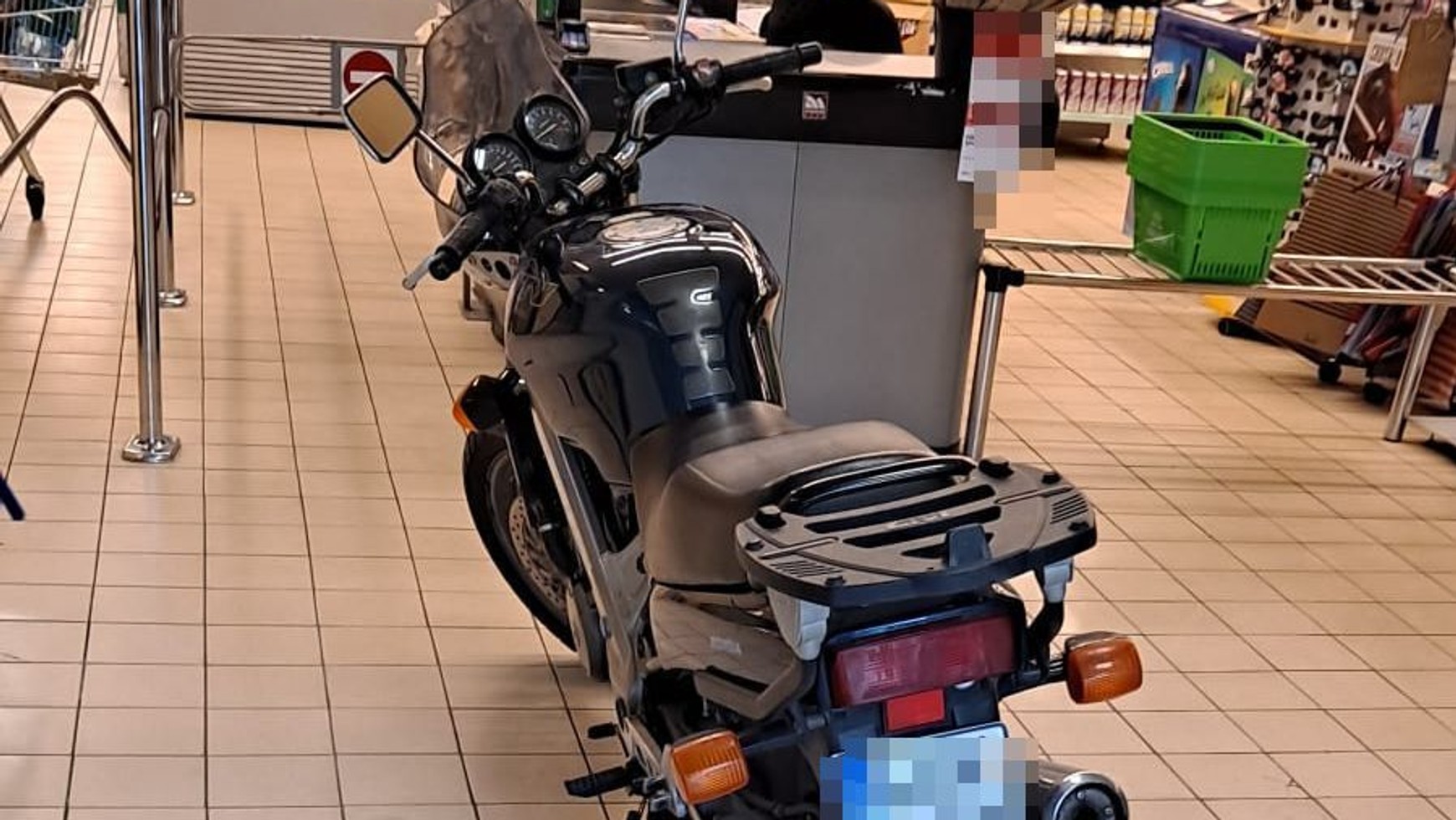 Kiedy do sklepu przyjechali policjanci wezwani przez pracowników, kierowca jednośladu zaczął używać klaksonu. Funkcjonariusze szybko interweniowali i wyjęli kluczyki ze stacyjki, by uniemożliwić mu dalszą jazdę.