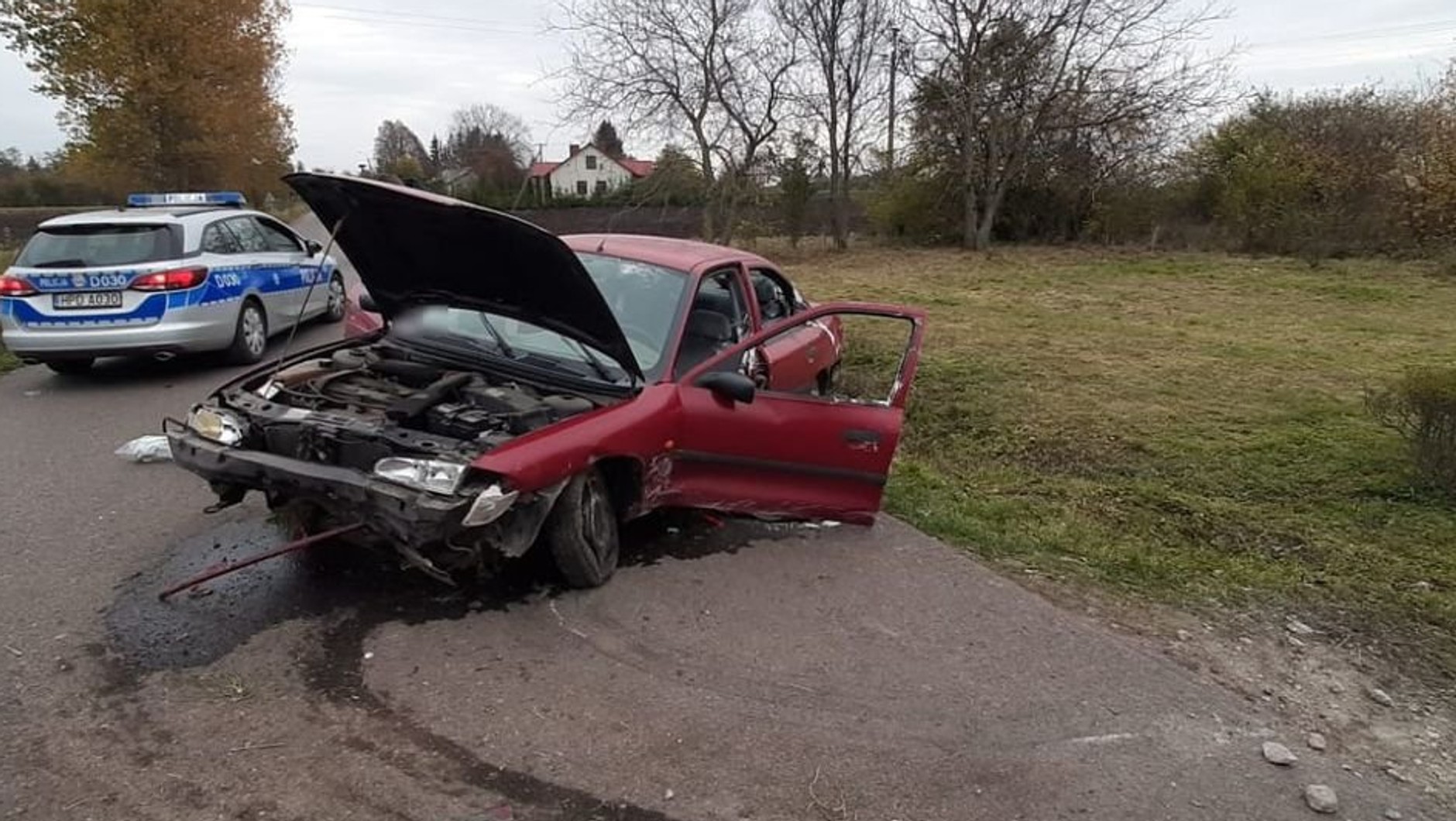 W Fordzie Mondeo, który został uszkodzony podczas jazdy, podróżowało dwóch mężczyzn w wieku 41 i 42 lata. Na szczęście żaden z nich nie doznał obrażeń, więc obyło się bez transportu do szpitala. Jak informuje aspirant sztabowy Jarosław Karkuszewski, obydwaj byli nietrzeźwi i nie chcieli przyznać się, kto prowadził auto, więc zostali zatrzymani do wyjaśnienia w policyjnym areszcie. Kiedy zatrzymani mężczyźni wytrzeźwieli, policjanci wykonali z ich udziałem czynności procesowe. 41-latek, który przyznał się do prowadzenia pojazdu, miał ponad 2,5 promila alkoholu w organizmie. Usłyszał zarzut kierowania stanie nietrzeźwości i spowodowania kolizji.