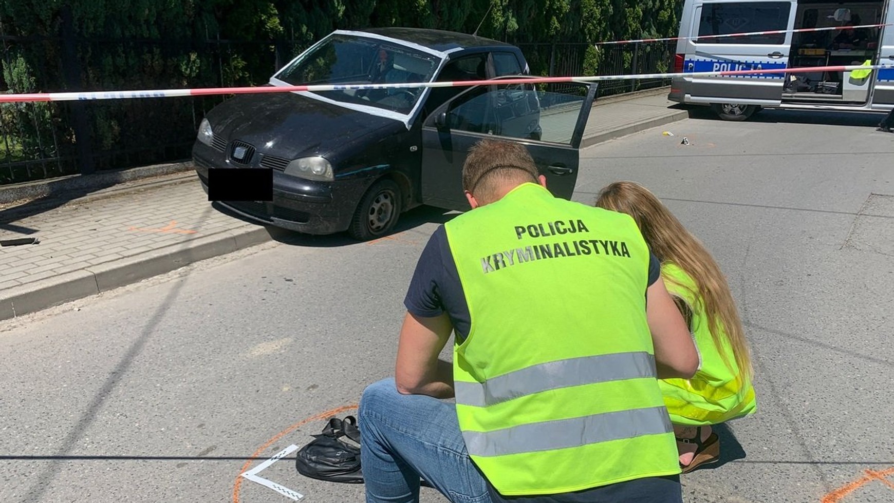 Na miejscu zdarzenia nadal pracują policjanci, technik kryminalistyki oraz prokurator.