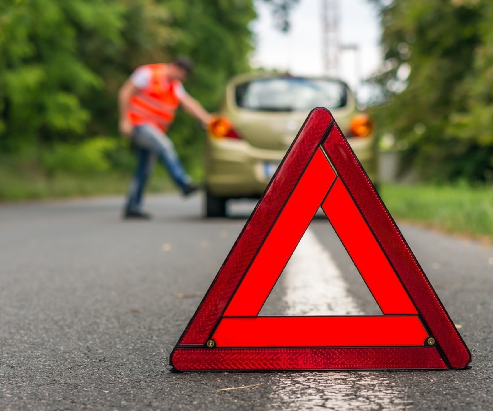 Jeśli pojazd został uszkodzony, to na obszarze zabudowanym trójkąt ostrzegawczy: