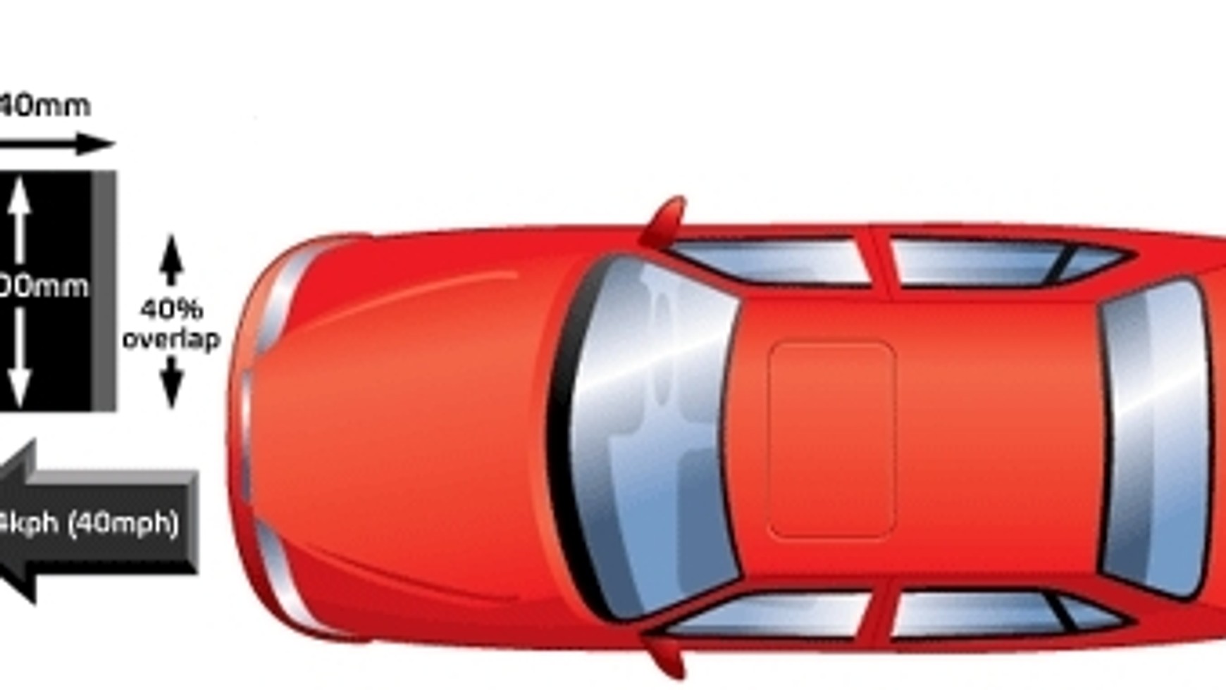 Każdy testowany samochód zderza się z nieruchomą przeszkodą pokrytą warstwą deformowalnego aluminium na przodzie. To zderzenie symuluje większość typowych wypadków drogowych, powodujących poważne uszkodzenia, czyli czołowe zderzenie samochodów o podobnej masie. W większości zderzeń tego typu następuje częściowe zderzenie przodami. W teście zderzenie odtwarzane jest poprzez 40 procentowe uderzenie przodem w barierę, której przód jest odkształcalny symulując inny samochód. Test ten jest surową próbą wytrzymałości samochodu odnośnie uszkodzeń części pasażerskiej.