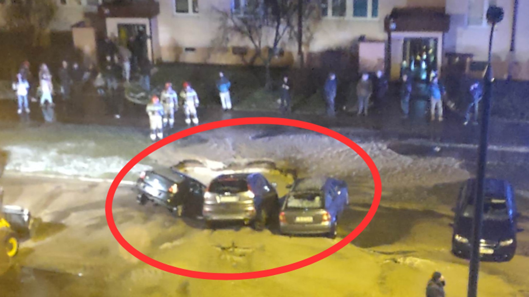 W efekcie zalania dziura "zassała" trzy samochody. Jak relacjonuje nasza rozmówczyni, jeden z pojazdów (na zdjęciu powyżej z prawej) po wyciągnięciu odjechał bez większych problemów. Środkowy został wyciągnięty, ale w dalszą podróż udał się lawetą. Najgorszy los spotkał ostatnie auto (z lewej).