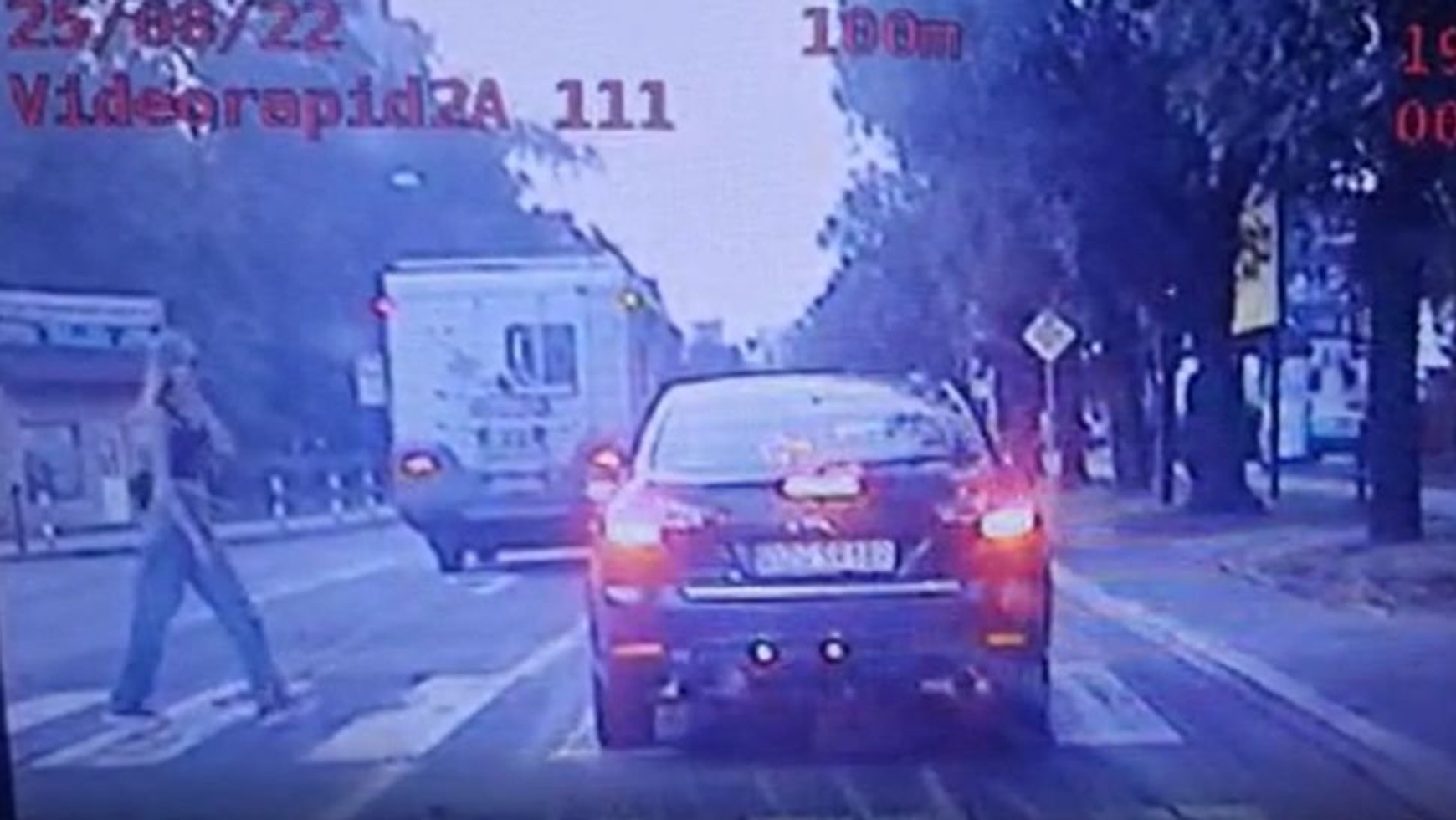 To był zły manewr i w wyjątkowo pechowych okolicznościach: kierowca Forda jadący ulicą Warszawską w Zgorzelcu zignorował pieszą przechodzącą przez pasy akurat w chwili, gdy jechał za nim radiowóz grupy SPEED. Kadr z nagrania nie budzi wątpliwości: piesza na środku jezdni, samochód na pasach. 1500 zł mandatu, 10 punktów karnych. Kierowca może się pocieszać, że choć to kara po podwyżce mandatów, to jednocześnie... przed zmianą zasad "punktowania". A zmiany w taryfikatorze punktowym tuż-tuż.