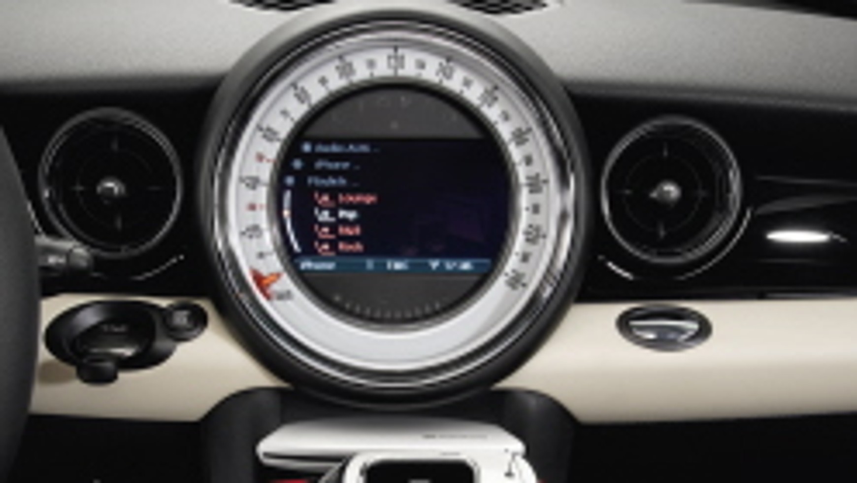 W modelach MINI funkcje smart phon’u widoczne są również na wyświetlaczu nawigacji satelitarnej lub wyświetlaczu radia.