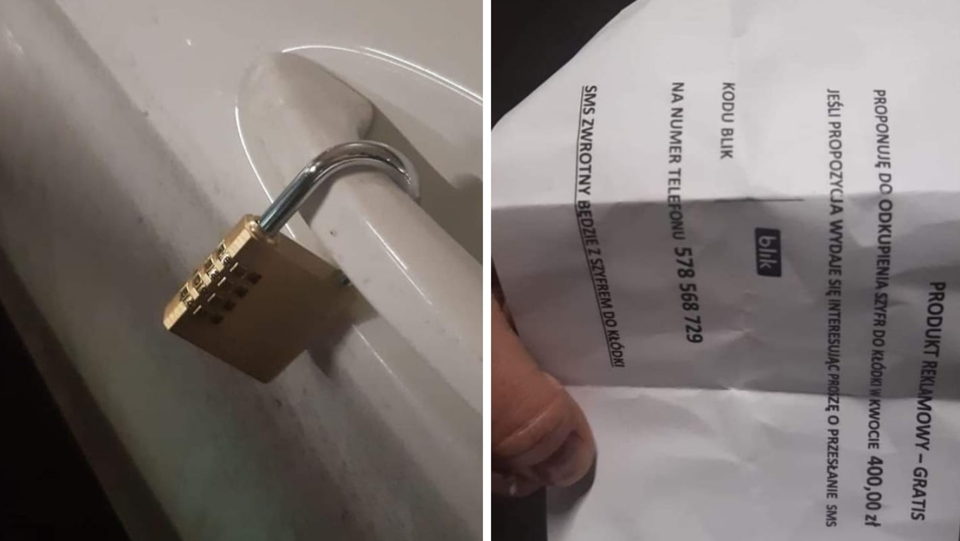 Wraz z nimi na samochodzie umieszczano krótką wiadomość, w której oszuści oferują przesłanie kodu do otwarcia kłódki po przelaniu blikiem kilkuset złotych na podany numer telefonu.