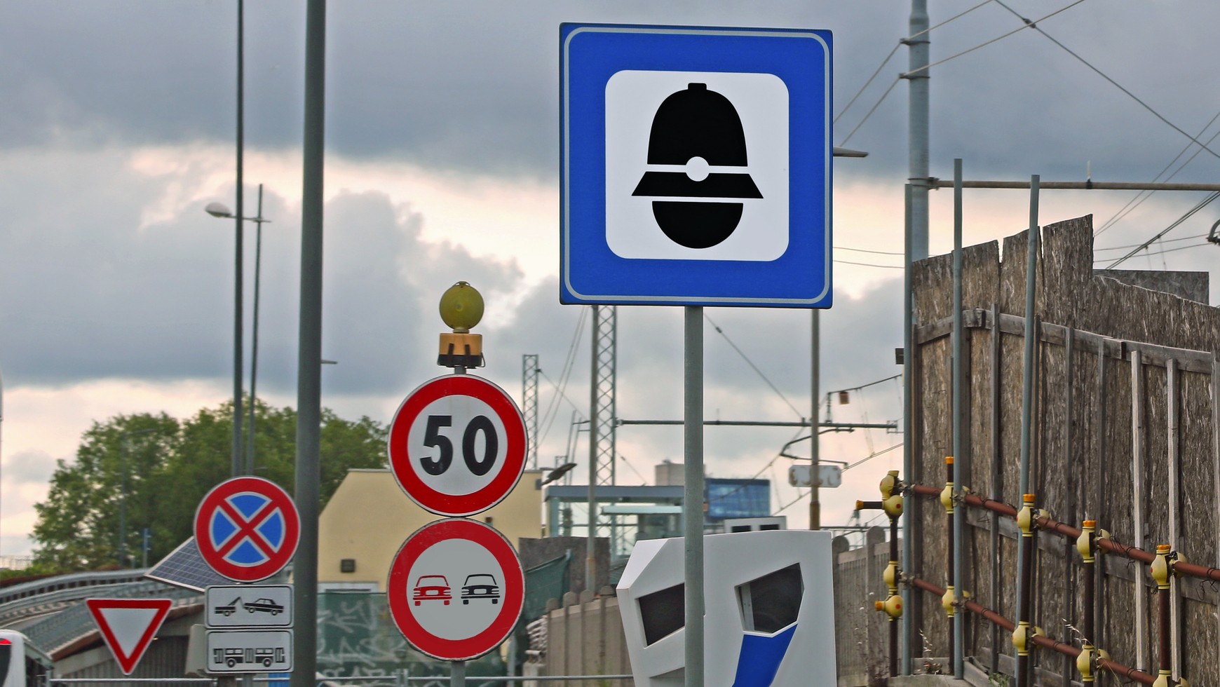 Tego typu znak z głową policjanta najczęściej oznacza, że zbliżamy się do fotoradaru. Kierowca powinien więc wówczas uważać na stacjonarną kontrolę prędkości. Włosi jednak w znanym sobie stylu nieco skomplikowali cały system kontroli fotoradarami, dlatego nie jest to jedyny znak, jaki można spotkać, dojeżdżając do fotoradaru. Wzorów jest kilka, co więcej, często obok jest także podpis "Controllo elettronico della velocita", co po prostu oznacza elektroniczną kontrolę prędkości. Jeśli jest dodatkowy napis, oznacza to, że fotoradar jest stały, a jeśli go nie ma, jest to fotoradar mobilny.