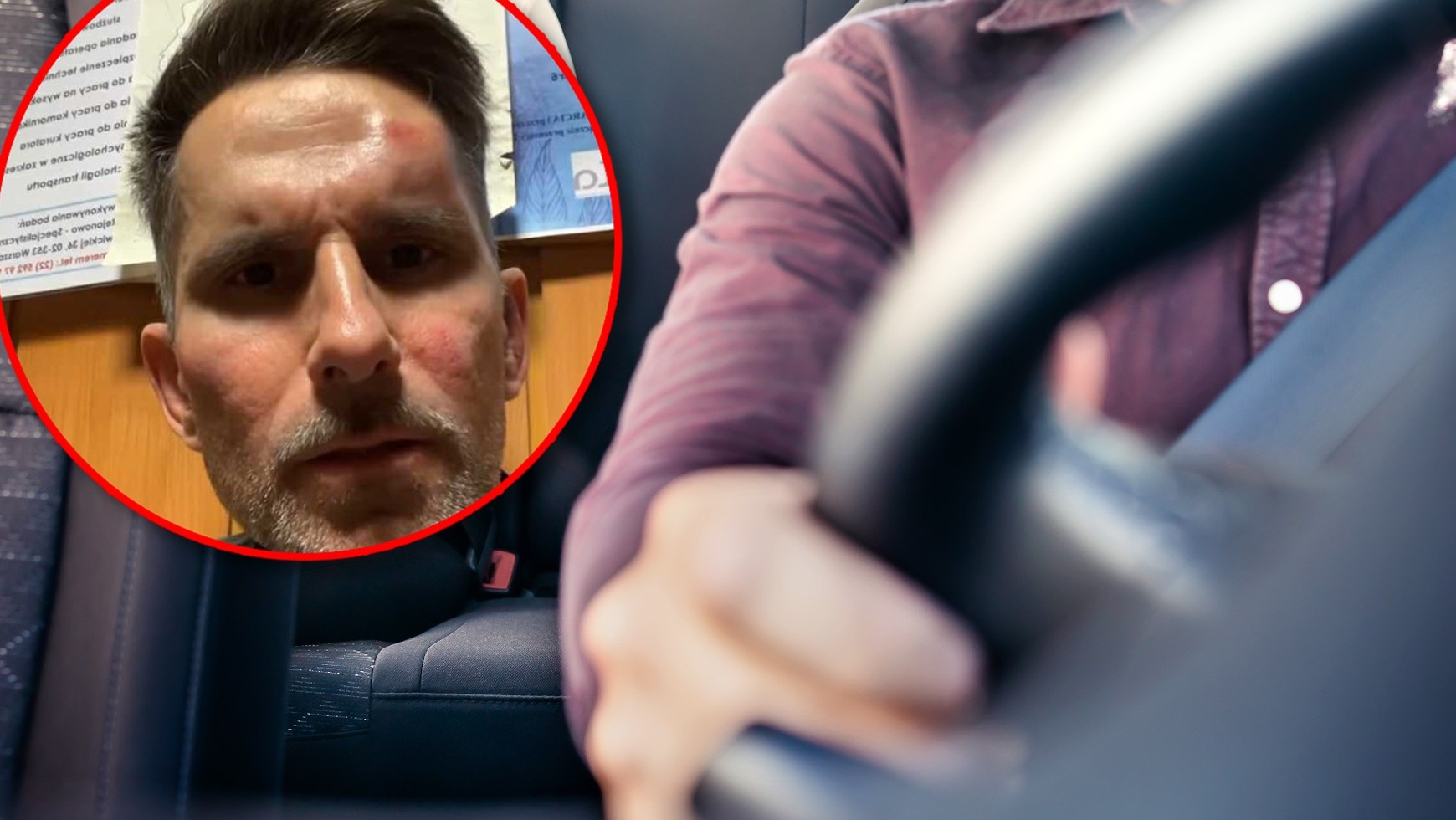 - Tak wyglądam. Będę miał takiego guziora. Właśnie przed chwilą jeden pan, kierowca Ubera, prawie rozjechał mojego młodszego syna. Jak zgłosiłem protest przeciwko temu postępowaniu, zaczęła się bijatyka, nie wiadomo skąd znalazło się czterech czy pięciu jego kolegów i dostałem solidne bęcki - relacjonował.