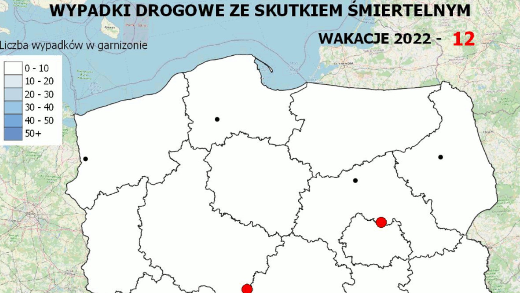 Na publikowanej w okresie wakacji mapie, dostępnej na stronie policja.pl, w mediach społecznościowych oraz na stronach administrowanych przez jednostki policji, zaznaczane są wypadki, do których doszło w ciągu ostatniej doby, a także publikowana jest informacja o liczbie ofiar śmiertelnych od początku wakacji. Jak wynika z danych udostępnionych przez policję, od zakończenia roku szkolnego 2021/2022 na polskich drogach zginęło już 12 osób.