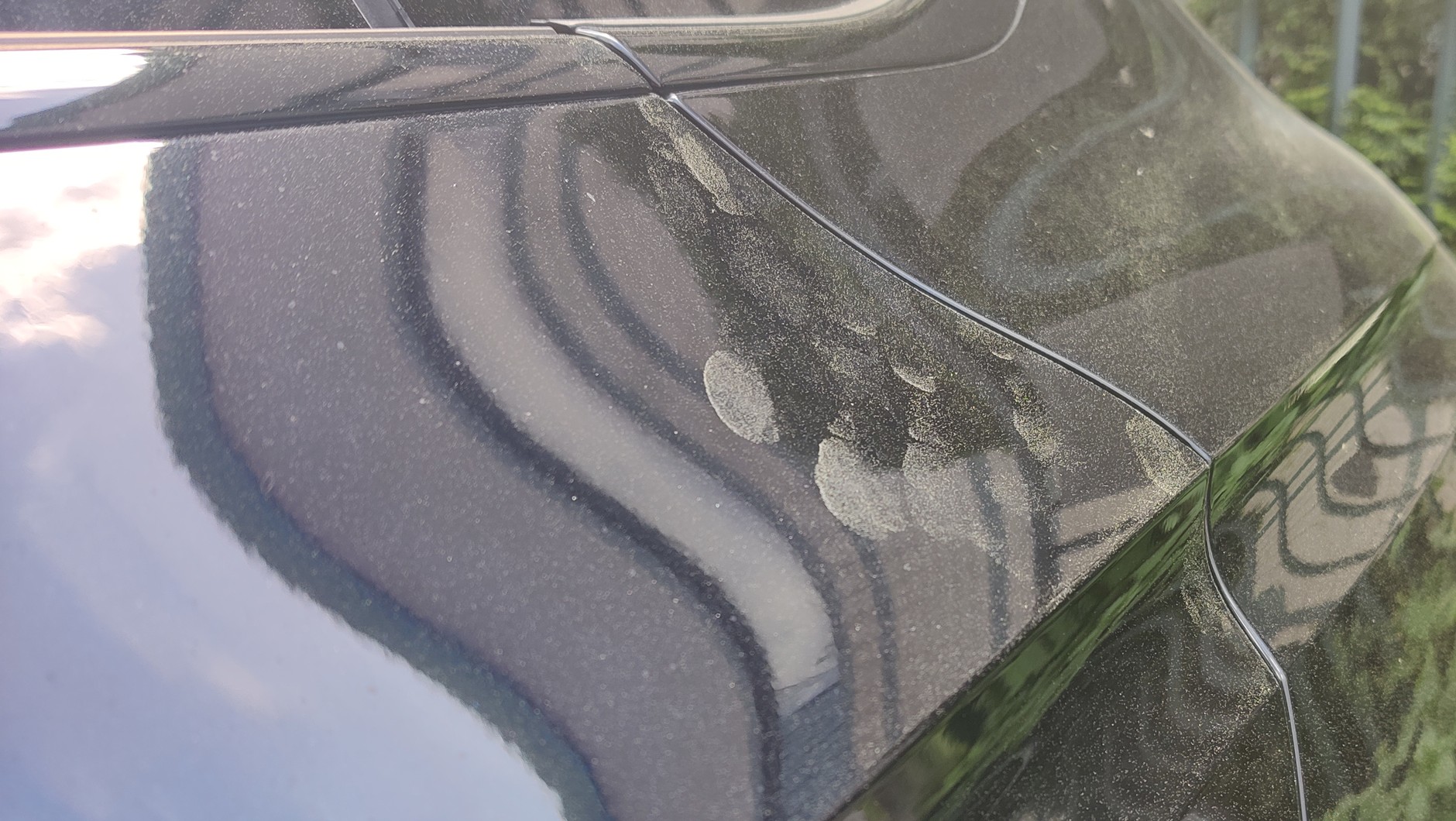 Zadowolony, że auto jest czyste, zabrałem się za "cykanie" fajnych ujęć i w pewnym momencie pod światło zobaczyłem... żółty pył, już wytarty od moich palców na krawędziach drzwi. Jak to możliwe? Od wizyty na myjni minęło jakieś 30-40 min. Auto powinno być praktycznie nieskazitelnie czyste. Nie tym razem. Co prawda, strzepałem pył z miejsc, w których było to możliwe, ale i tak na niektórych ujęciach wyraźnie widoczne będą nasiona sosny. Trzeba im przyznać, że mają niewiarygodne "parcie na szkło".