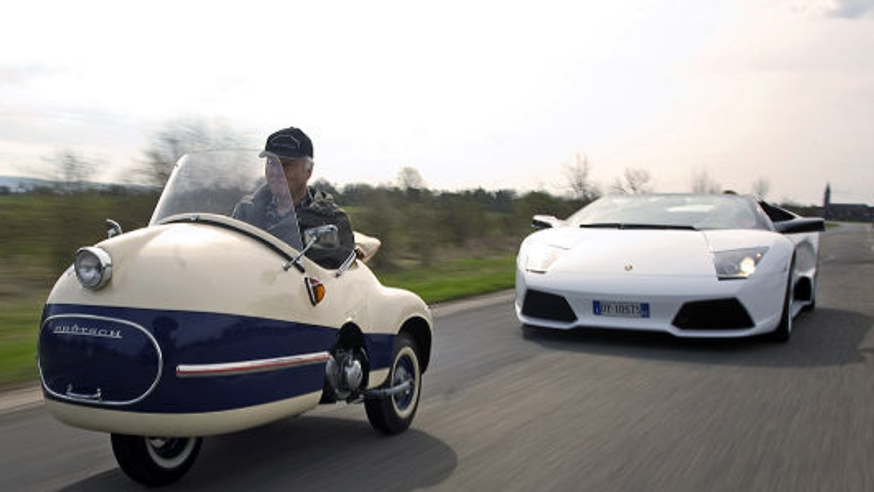 640 KM kontra 2,3 KM. 12 cylindrów o łącznej pojemności 6,5 litra przeciwko jednemu malutkiemu cylindrowi z pojemnością skokową 50 centymetrów sześciennych. 330 km/h i 30 km/h – trudno o dwa tak odmienne samochody.