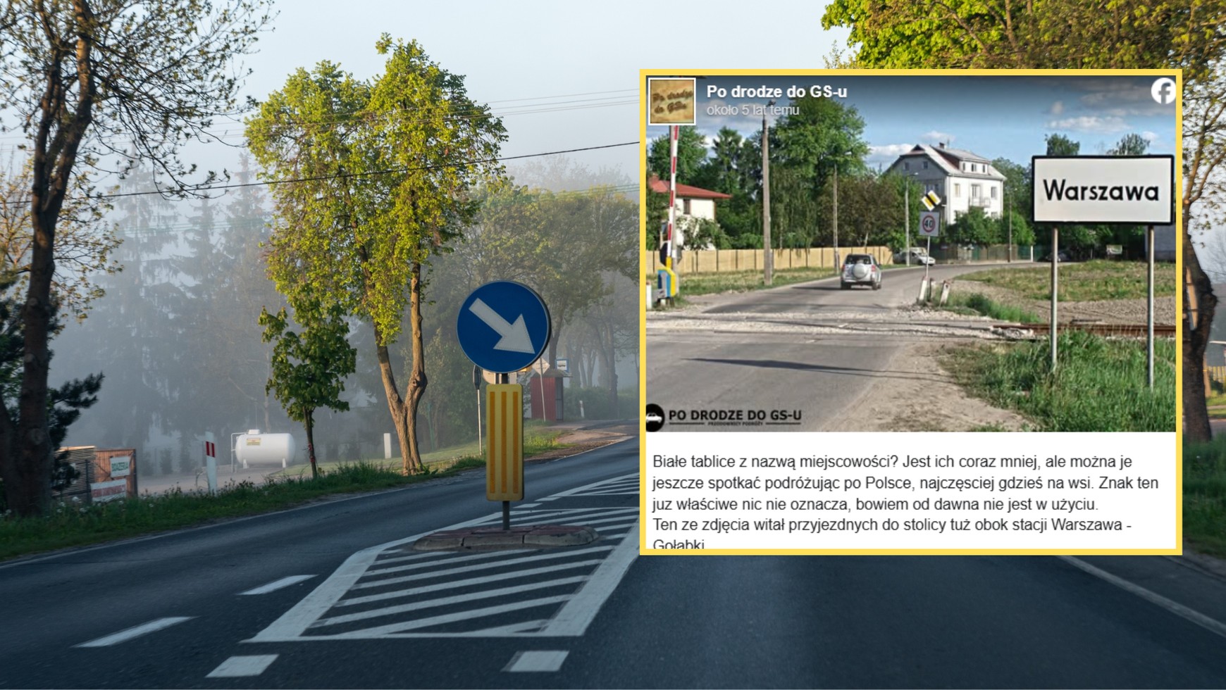 "Białe tablice z nazwą miejscowości? Jest ich coraz mniej, ale można je jeszcze spotkać, podróżując po Polsce, najczęściej gdzieś na wsi. Znak ten już właściwe nic nie oznacza, od dawna nie jest w użyciu. Ten ze zdjęcia witał przyjezdnych do stolicy tuż obok stacji Warszawa — Gołąbki" — napisał na Facebooku profil Po drodze do GS-u w 2020 r.