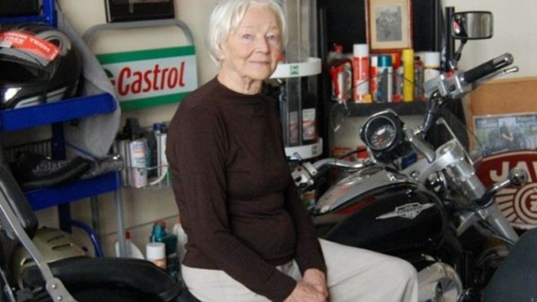 Och już jakiś czas temu przestałam jeździć na motocyklu. To już po prostu śmiesznie by wyglądało. Za to prowadzę samochód. Jak na mój wiek, 89 lat uważam, że to i tak bardzo dobrze.