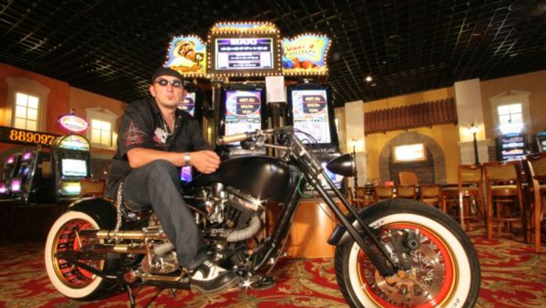W bryłę motocykla wkomponowano tyle ciekawych detali, że oglądanie go wciąż sprawia przyjemność i nigdy się nie nudzi. Clou programu stanowi tylne koło. Jego felgę pomalowano na kształt i podobieństwo tarczy ruletki. Do piasty na długim wsporniku przymocowana jest biała kulka. Oddzielne łożyskowanie umożliwia niezależne obracanie się tylnego koła i wspomnianej kulki. Aby ta moto-ruletka mogła działać, należało wyposażyć Black Gamblera w dość nietypowy, jak na harleyopochodnego customa, element - mianowicie w podstawkę centralną. Umożliwia ona uniesienie tylnego koła. Do podnoszenia i opuszczania motocykla służy zmyślny mechanizm obsługiwany ręczną dźwignią. Wywołuje to skojarzenia ze słynnymi angielskimi maszynami Brough Superior z lat 30. ubiegłego wieku. Kiedy motocykl już stoi na podstawce wystarczy uruchomić silnik i włączyć bieg. Kiedy następnie wysprzęglimy i wciśniemy tylny hamulec, koło zatrzyma się, natomiast biała kulka będzie jeszcze przez jakiś czas krążyć wokół piasty, aż w końcu zakończy swój bieg wskazując wygrane pole na feldze. Wzdłuż całej karoserii Black Gamblera - od przedniego błotnika, przez zbiornik paliwa, siodło, aż po tylny błotnik ciągnie się wymalowana aerografem plansza ruletki. W planach jest jeszcze montaż specjalnej sakwy na pieniądze i wtedy samobieżna motocyklowa ruletka będzie w pełni gotowa do gry.