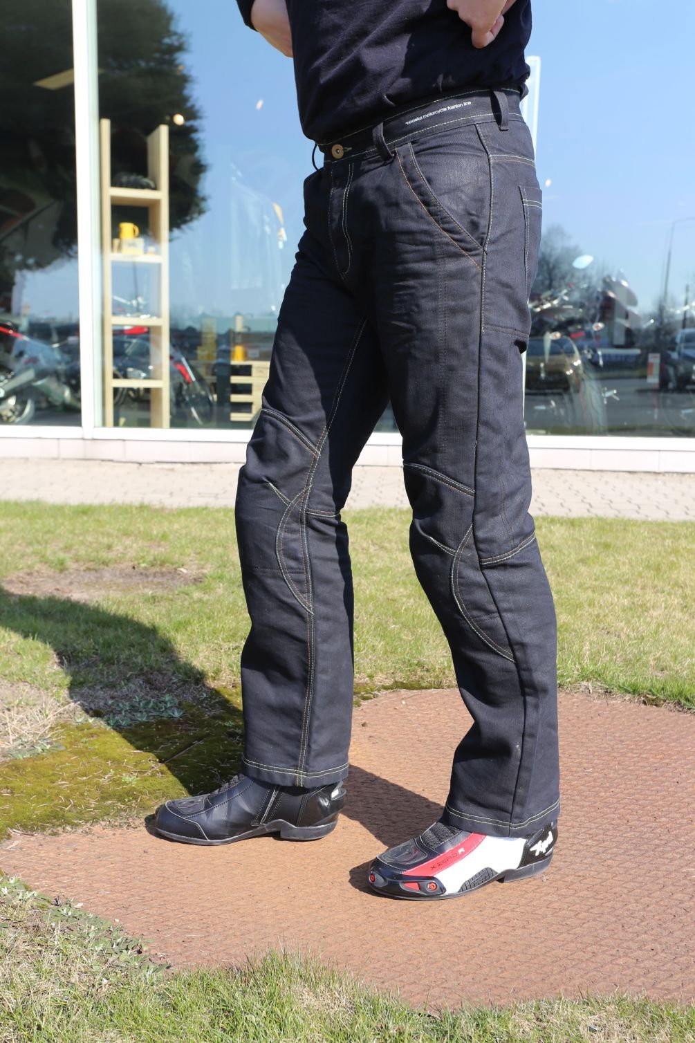 Długość nogawek wydaje się dobrana optymalnie. Nie podciągają się po zajęciu pozycji na motocyklu, niezależnie od rodzaju butów. Jednocześnie podczas chodzenia nie wloką się po ziemi czy podłodze, możemy więc spokojnie używać ich na co dzień. Siedzenie przy biurku nie różni się, poza ochraniaczami, niczym od siedzenia w „cywilnych” dżinsach.