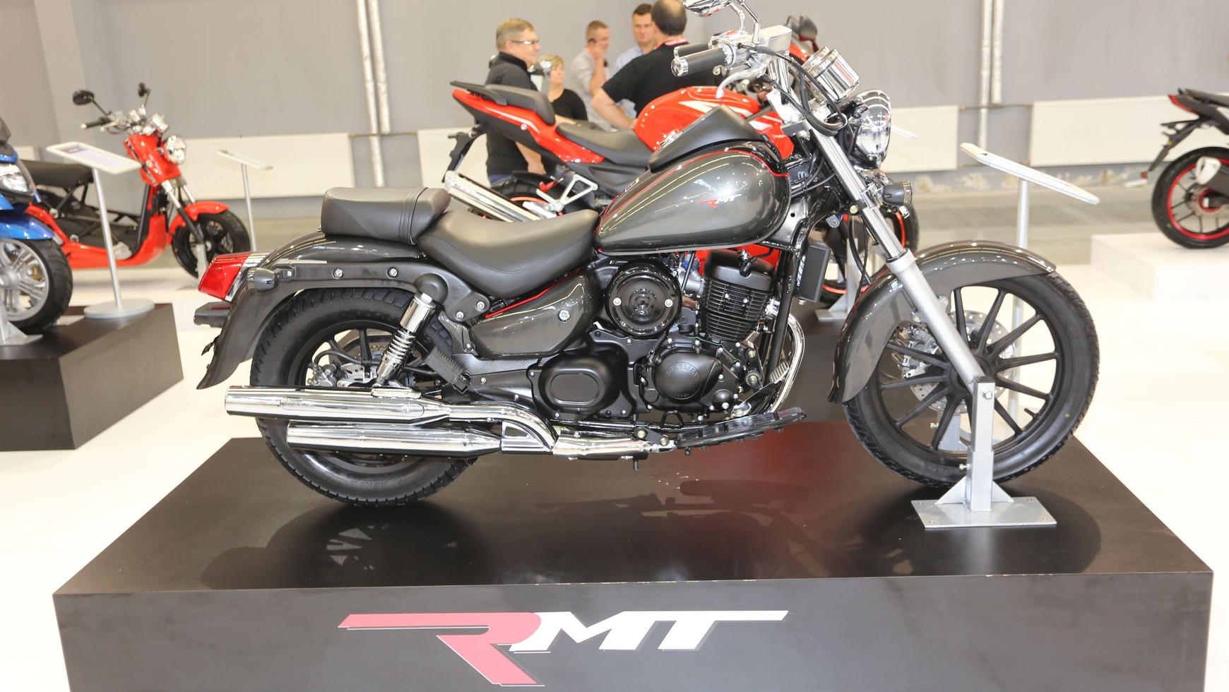 Ma być to marka Rometa przeznaczona dla nieco bardziej wymagających klientów. Romet odkrył karty i potwierdził, że pod nowym brandem będą kryły się produkty koreańskiego Daelima. Na targach przedstawiono kilka modeli, które są na razie produktami Daelima z logo RMT, jednak jak zapewniała nas Agnieszka Starzyk, dyrektor Romet Motors, na wiosnę mają pojawić się modele RMT nie mające swoich odpowiedników w palecie produkcyjnej Daelima.
