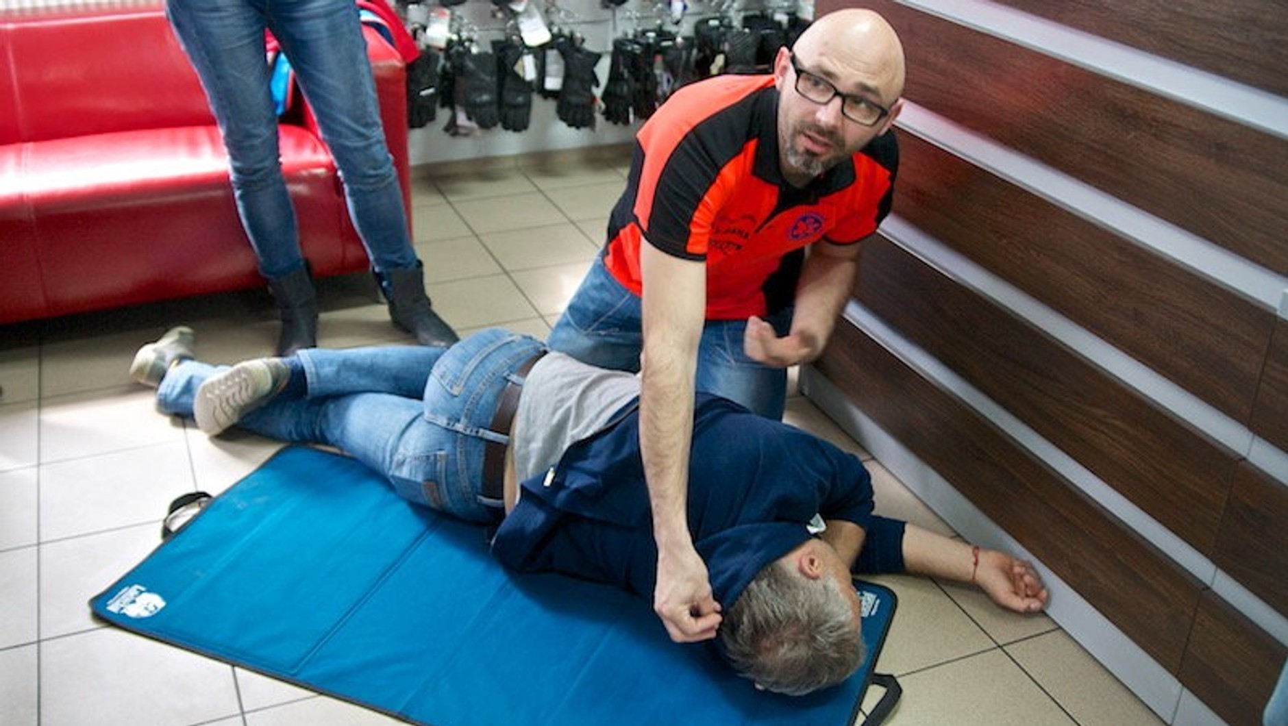 Pierwszym z nich była obsługa AED. Pod tym skrótem kryją się zautomatyzowane defibrylatory, które coraz częściej można spotkać w dużych miastach i mniejszych miejscowościach. Uczestnicy przekonali się, że ratowanie poszkodowanego przy pomocy defibrylatora wcale nie oznacza dziesięcioosobowej akcji rodem z serialu „Ostry dyżur”, a urządzenie samo prowadzi obsługującego przez całą procedurę.