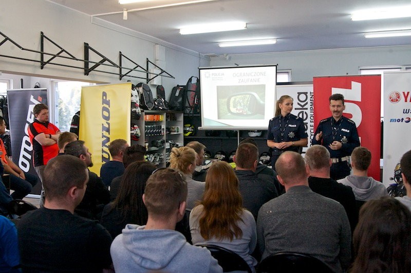 Drugą nowością była wizyta przedstawicieli policji, którzy nie tylko poruszyli istotne zagadnienia związane z bezpieczeństwem motocyklistów w ruchu drogowym, ale również ochoczo odpowiadali na pytania uczestników. Największą popularnością cieszyły się tradycyjnie te o lawirowanie w korku między samochodami. Dużo czasu poświęcono również postępowaniu w razie kolizji oraz przydatności i warunkach korzystania z kamer, które coraz częściej montują zarówno kierowcy samochodów, jak i motocykliści.