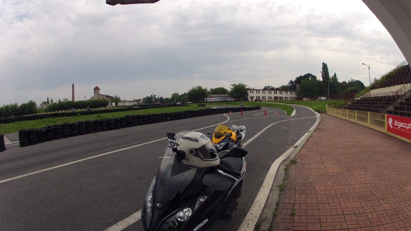 Po przyjechaniu na tor wciąż czułem się nieswojo. Obserwując jeżdżące supermoto i sporty pomyślałem sobie, jak bardzo spowolnię ich jazdę. No trudno, tor jest dla wszystkich. Pan wpuszczający na nitkę nie wyraził najmniejszego zdziwienia obecnością maxiskutera, co nieco podniosło moją pewność siebie, natomiast reszta uczestników przywitała mnie uśmiechem. Co naturalne, był to uśmiech szyderczy lub nawet „złośliwy chichot losu”