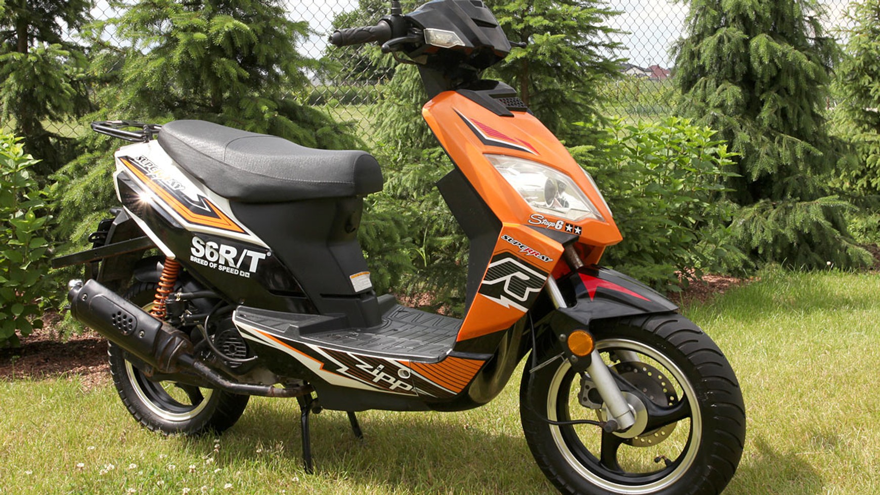 Testowałem odblokowany egzemplarz skutera. Na prostych odcinkach rozpędzał się do licznikowych 65 km/h. Pomiary z użyciem GPS wskazały wtedy prędkość 58 km/h, czyli „rozjazd” licznika to nieco ponad 10 procent. Skuter nie miał żadnych innych modyfikacji, poza zdjętym ogranicznikiem prędkości maksymalnej (fabrycznie skuter jest zablokowany i osiąga najwyżej 45 km/h – to wymóg specyfikacji motoroweru). Naklejki „Stage6” umieszczono na nim tylko dla picu. Gdyby jednak zastosować którąś z modyfikacji tego (lub innego) producenta, na pewno prędkość maksymalna wzrosłaby sporo ponad osiągane niecałe 60 km/h. Lepiej jednak nie przesadzać z tuningiem, bo Superray może mieć potem problemy z wyhamowaniem. Hamulec tarczowy zamontowano tylko na przednim kole (działa skutecznie), zaś na tylnym jest tylko bęben (dużo mniej skuteczny).