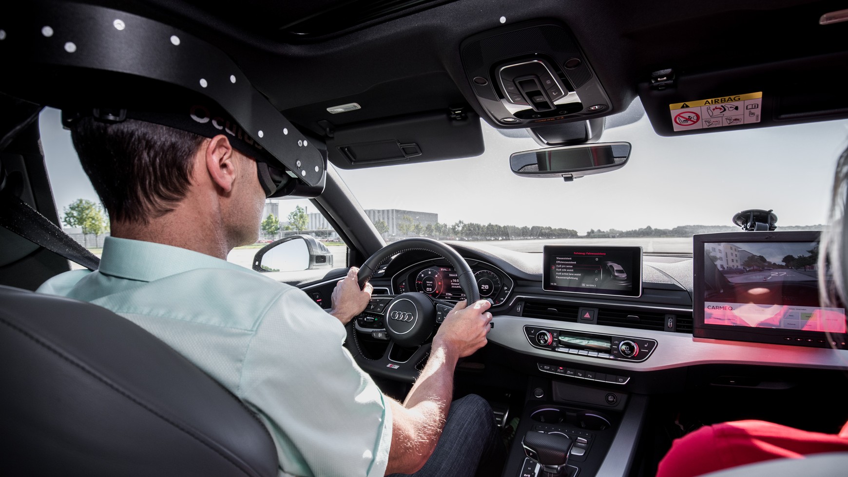 Jak sprawdzić system rozpoznawania zagrożeń? Najlepiej na wydzielonej części lotniska w Monachium. I koniecznie z goglami VR (wirtualna rzeczywistość) na głowie. Duży, pusty betonowy plac przyda się by jeździć bez obawy o kolizję. Gogle zaś są potrzebne do tego, by kierowca zamiast części lotniska zobaczył małe wirtualne miasteczko i poruszał się po nim prawdziwym ,a nie wirtualnym samochodem.