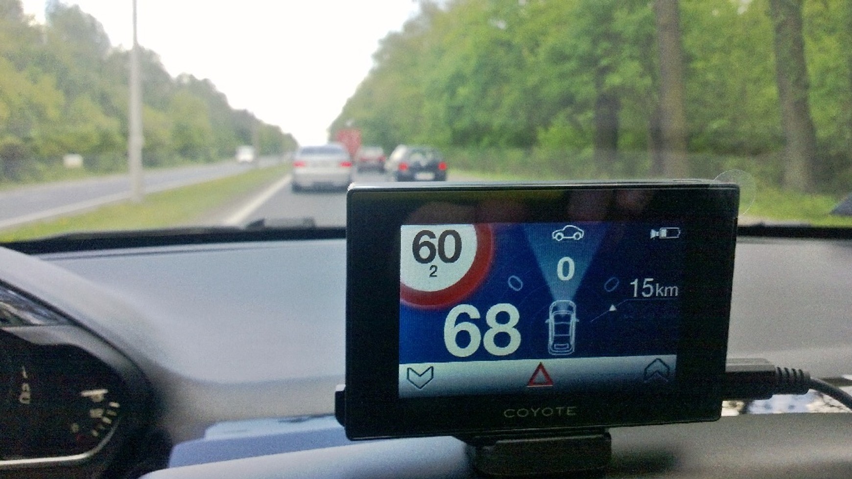 Na ekranie wyświetlane są tylko niezbędne informacje. Prócz dopuszczalnej prędkości także bieżący odczyt prędkości. Dopuszczalną prędkość można korygować: to zabezpieczenie na wypadek, gdyby dane w Coyote nie oddawały aktualnego stanu. W trakcie pierwszych jazd zdarzyło się, że zamiast 50 km/h na ekranie pojawiała się wartość 60 km/h.