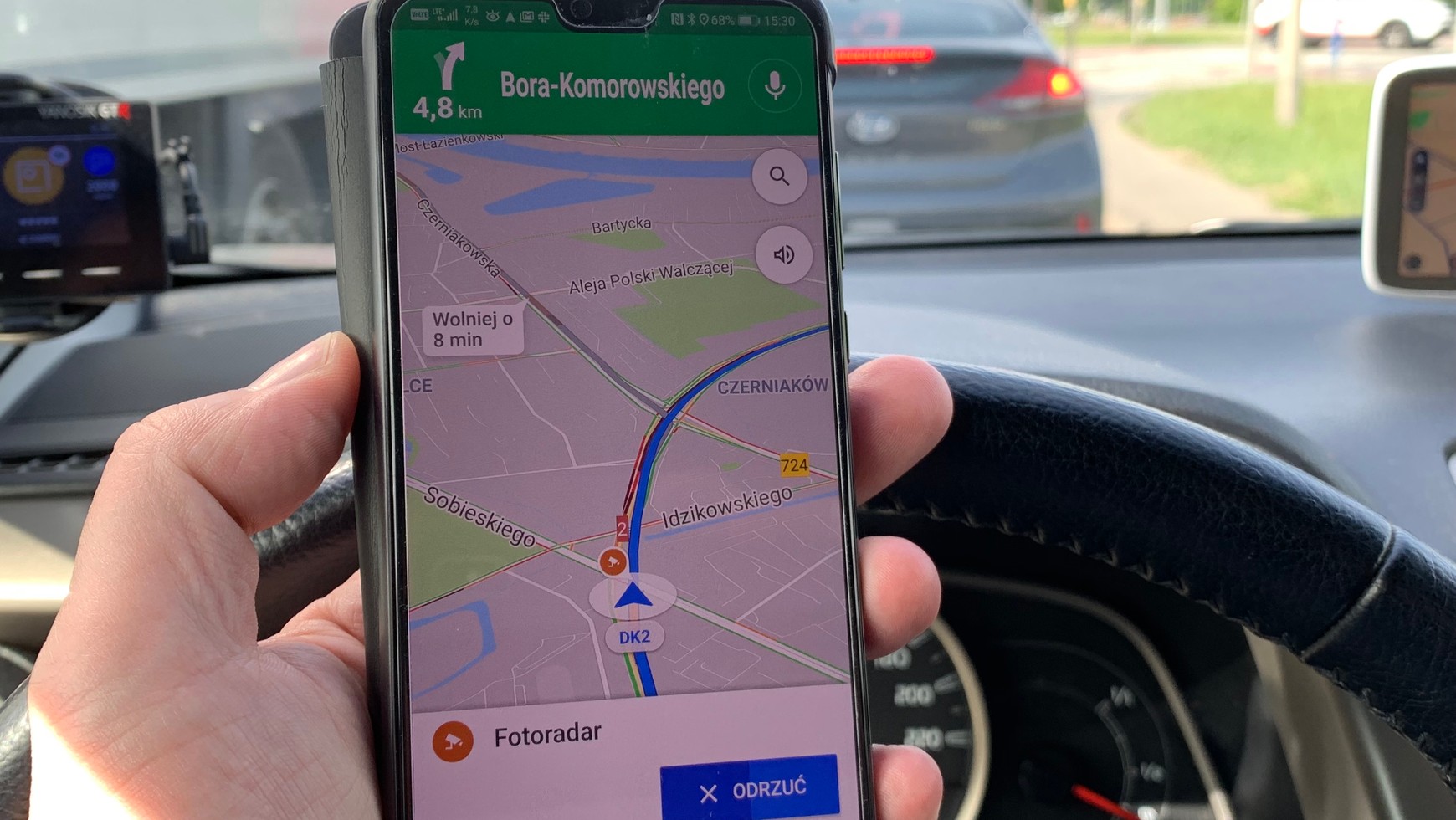 Póki co, aplikacja nie ostrzega przed odcinkowym pomiarem prędkości. Tuż przed Warszawą program nie poinformował o instalacji na krajowej dwójce. O stacjonarnym fotoradarze postawionym kilka kilometrów dalej alarmował tylko podczas jazdy w jedną stronę (granica miasta). Gdy przejechaliśmy ten sam odcinek w stronę centrum, Google Maps nie zareagowało.